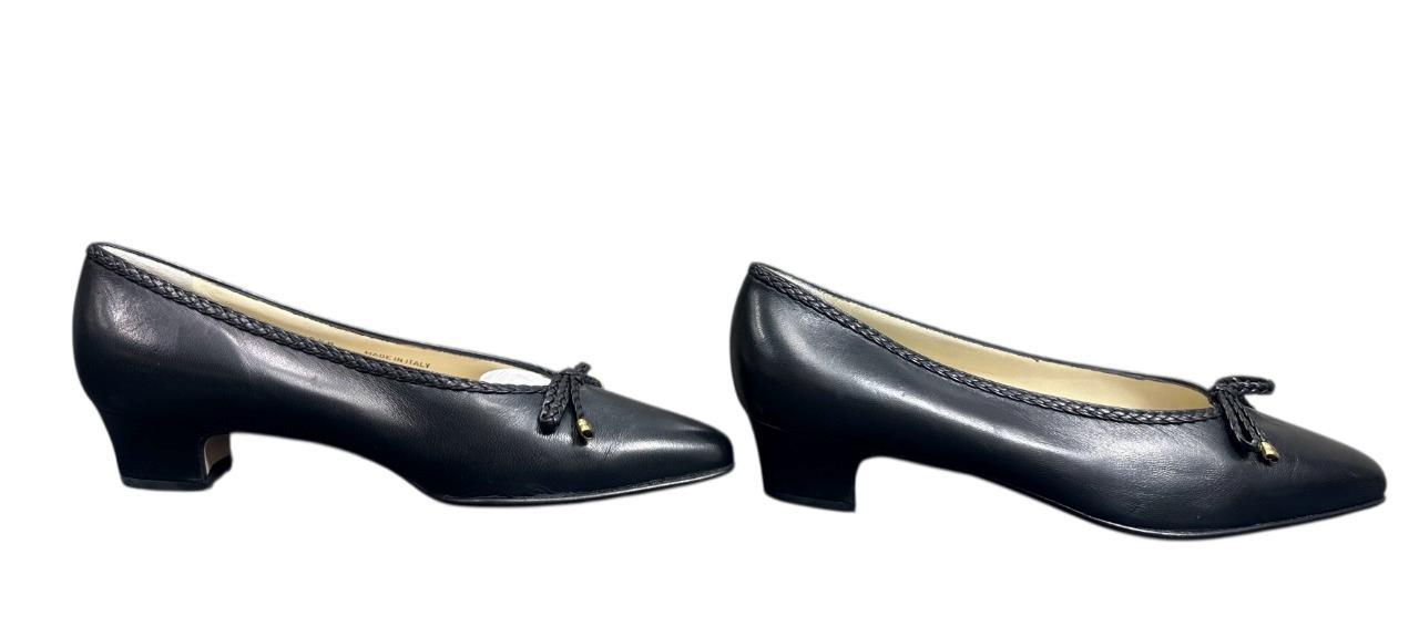 BALLY Lucy Black Leather Slip On Heel Shoes Size 9.5 M Made in Italy