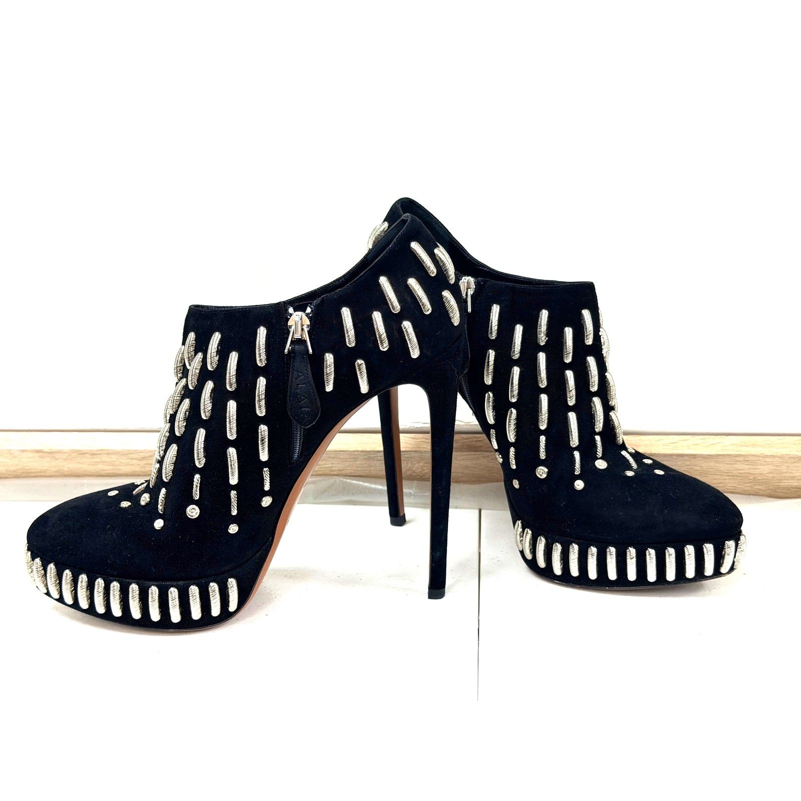 VTG Alaïa Paris Black Suede Studded Platform Ankle Boots Sz 39.5 / US 9.5