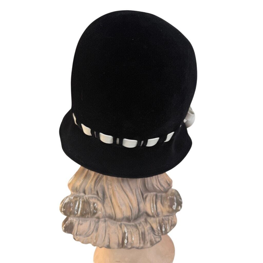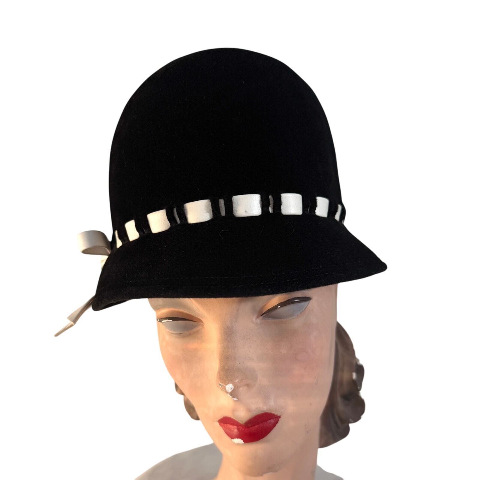 1960s Vintage Bucket Hat Genevieve Black & White Mod Wool Felt Sz M 21"