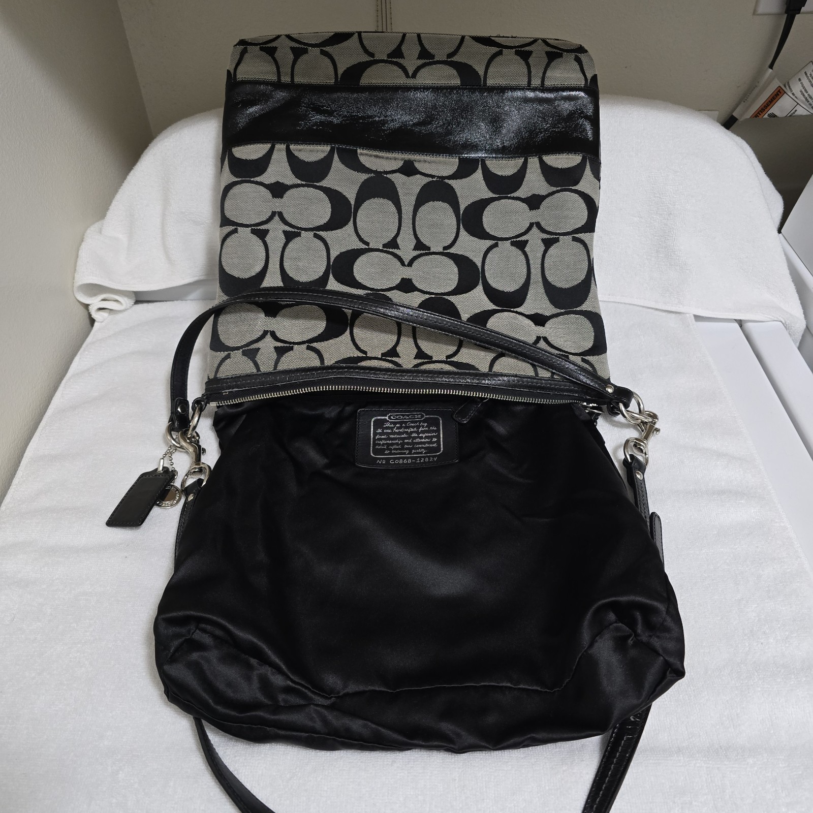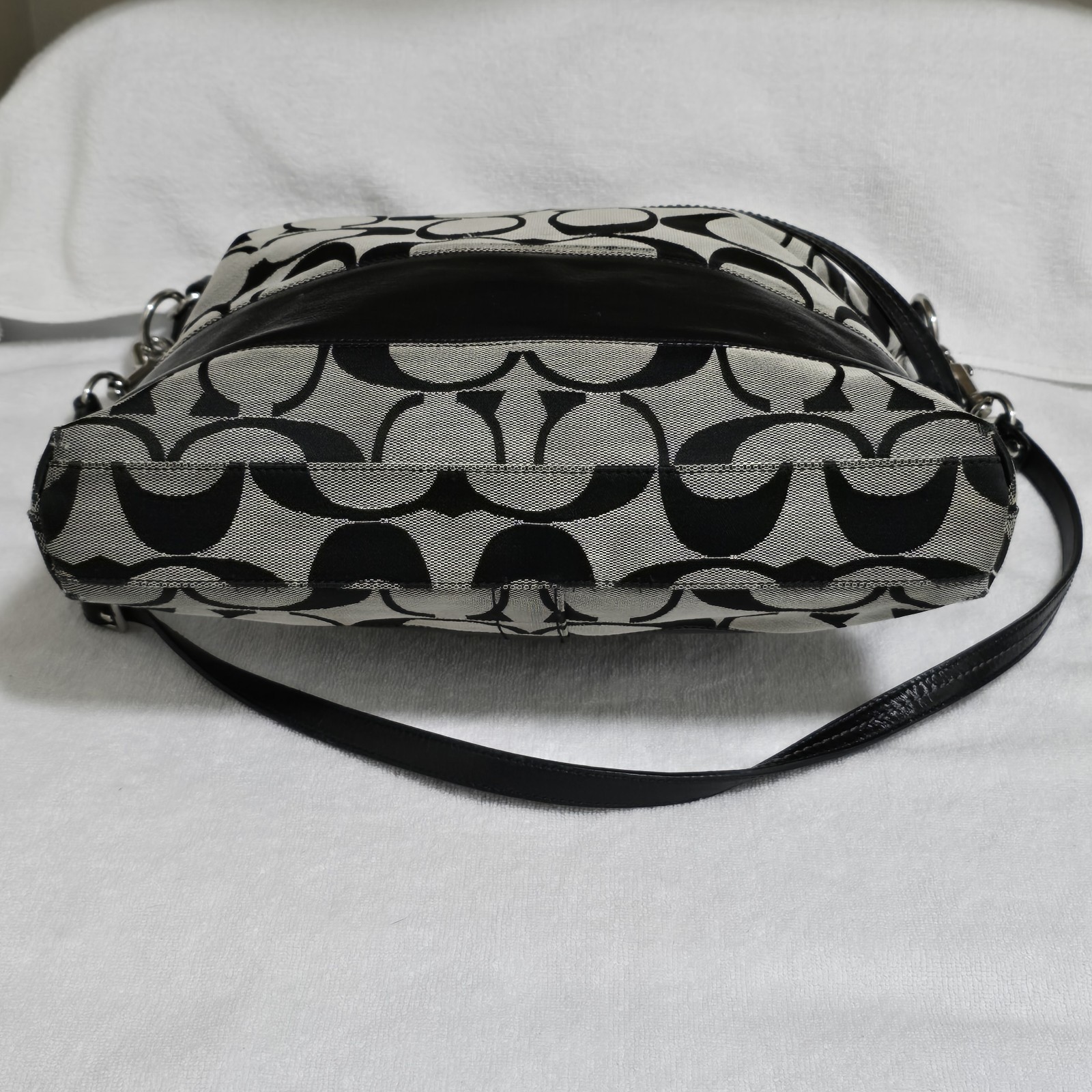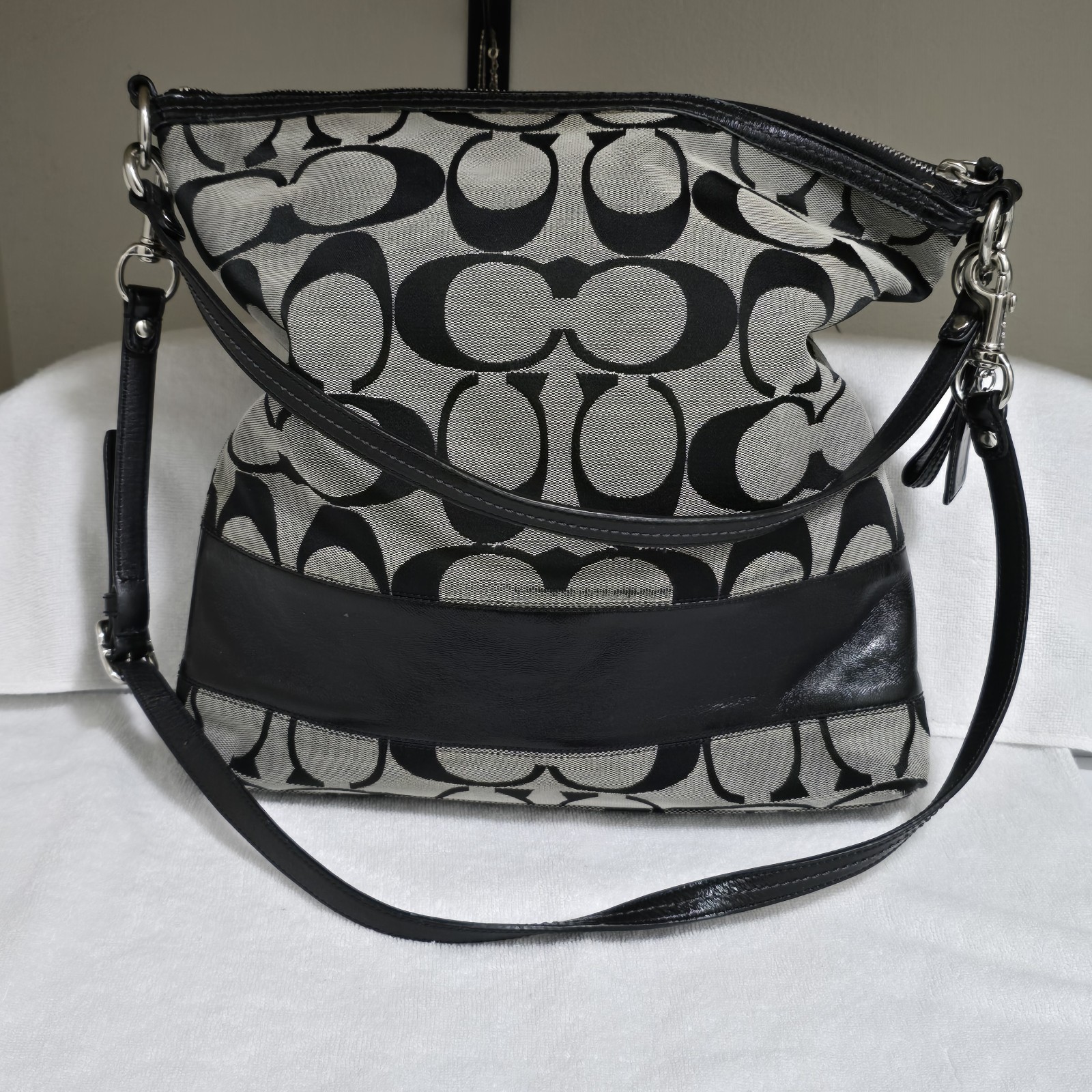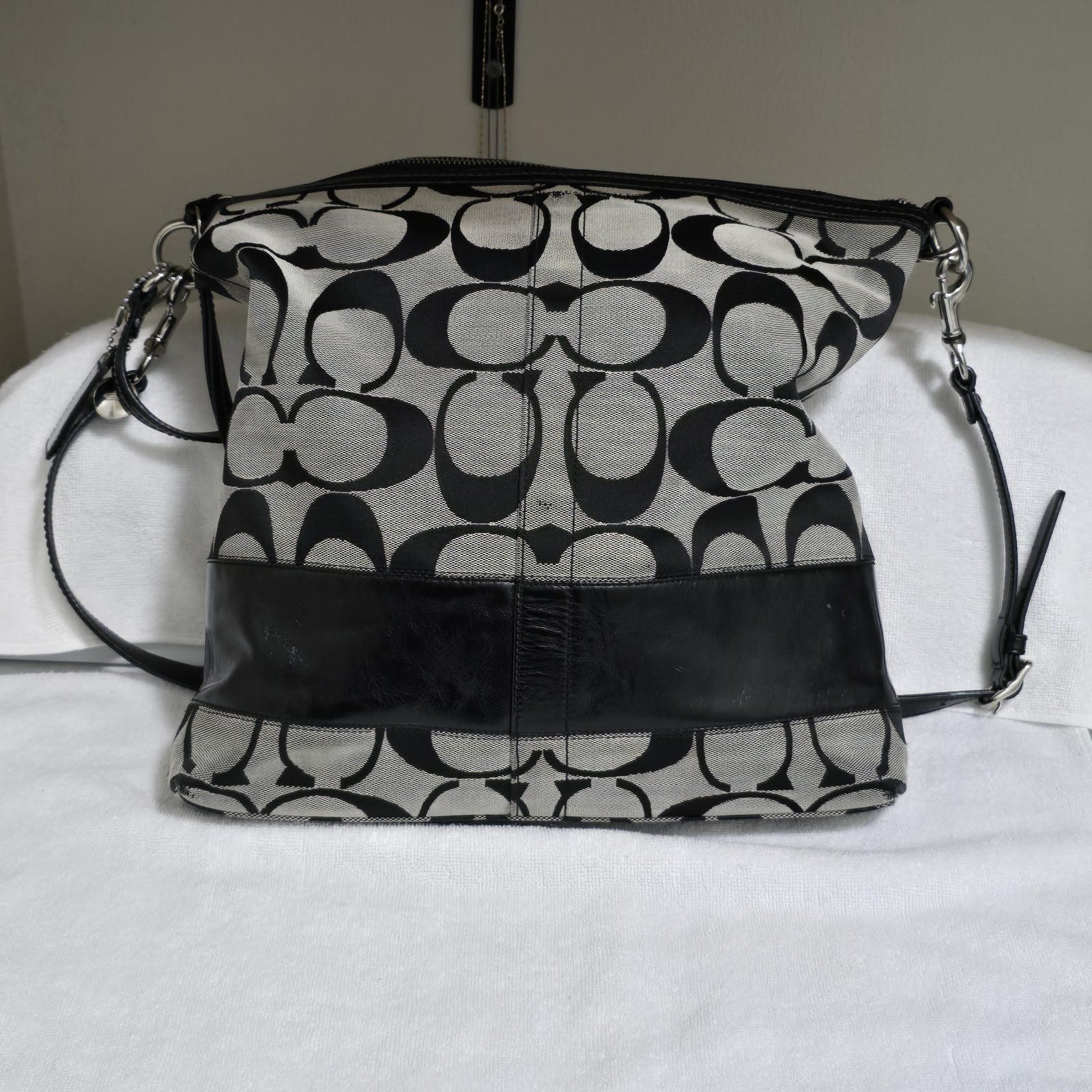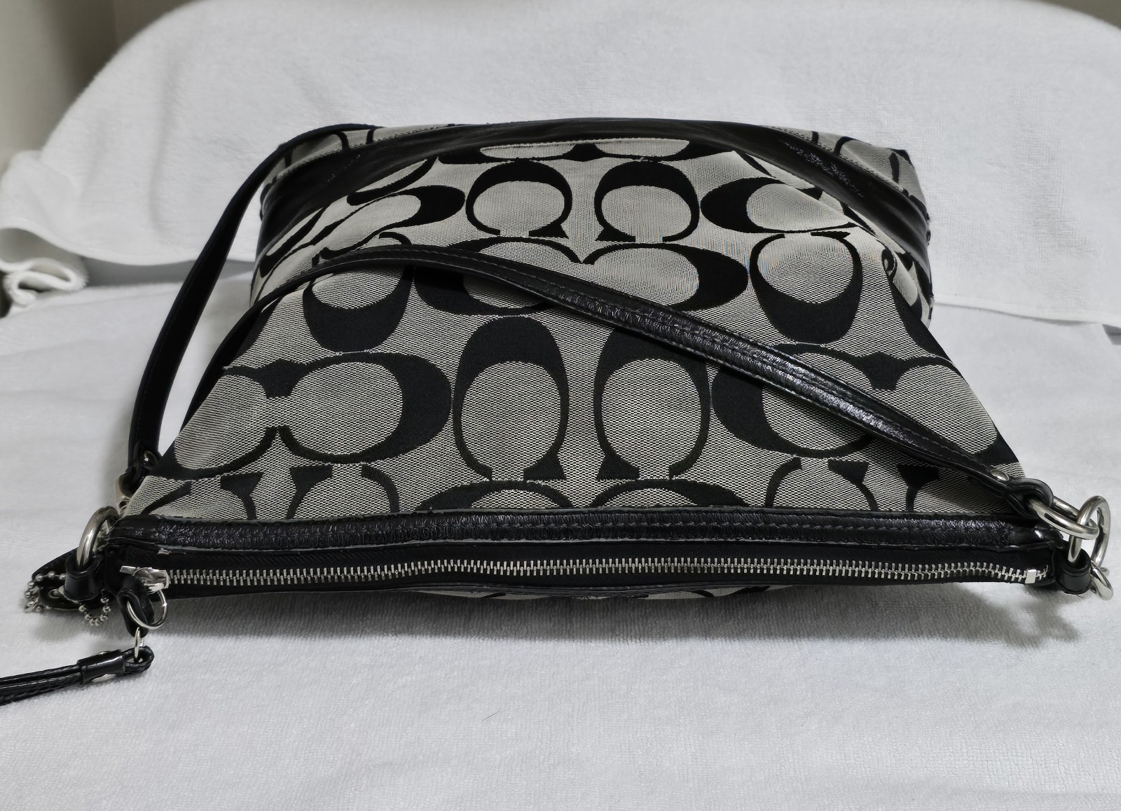 Coach Signature C Black White Hobo Crossbody Bag Leather Trim Purse READ