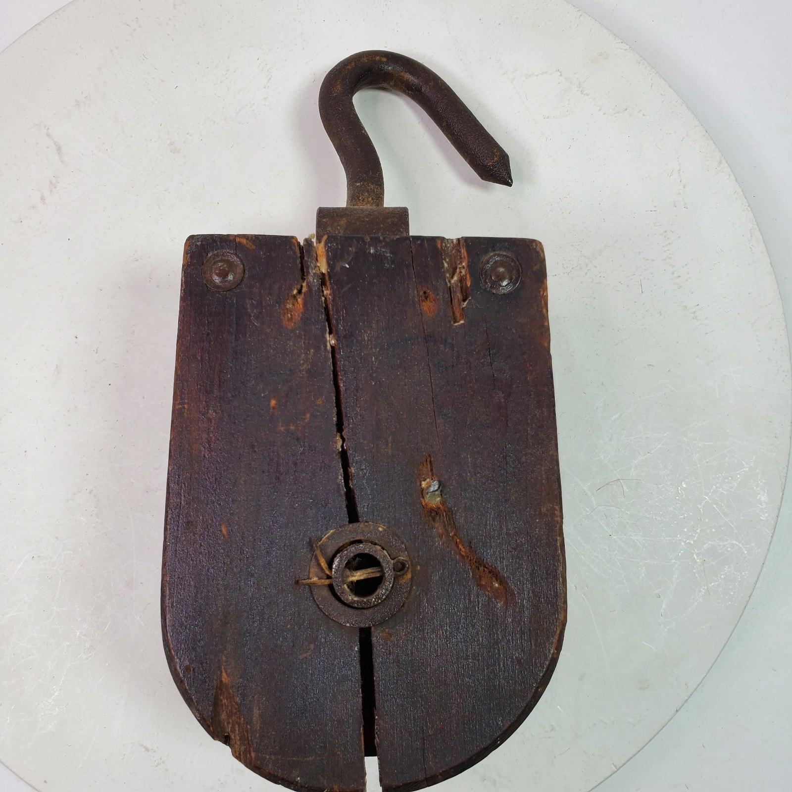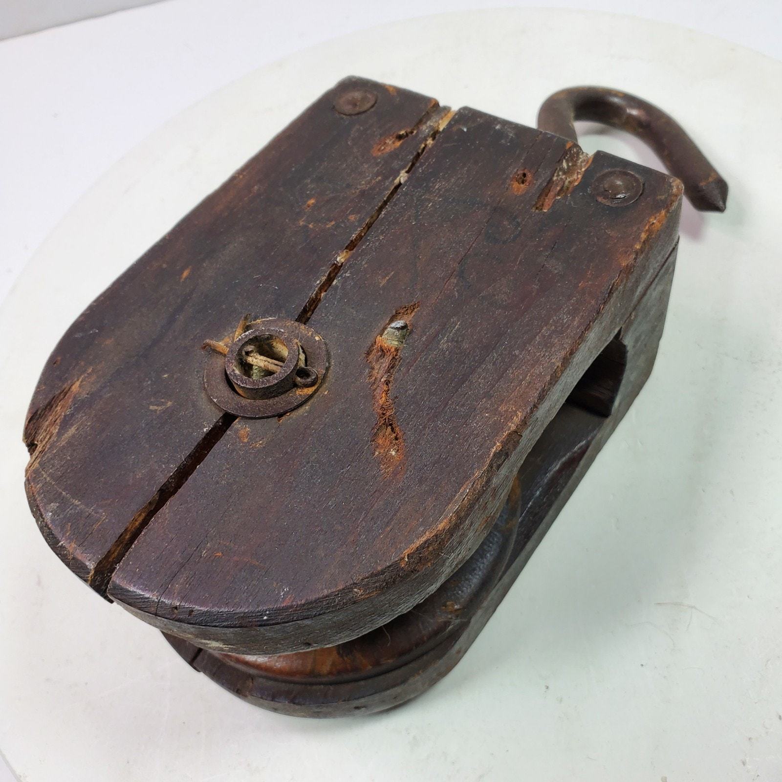 Antique Primitive Wood Pulley Single Wheel Barn Pulley