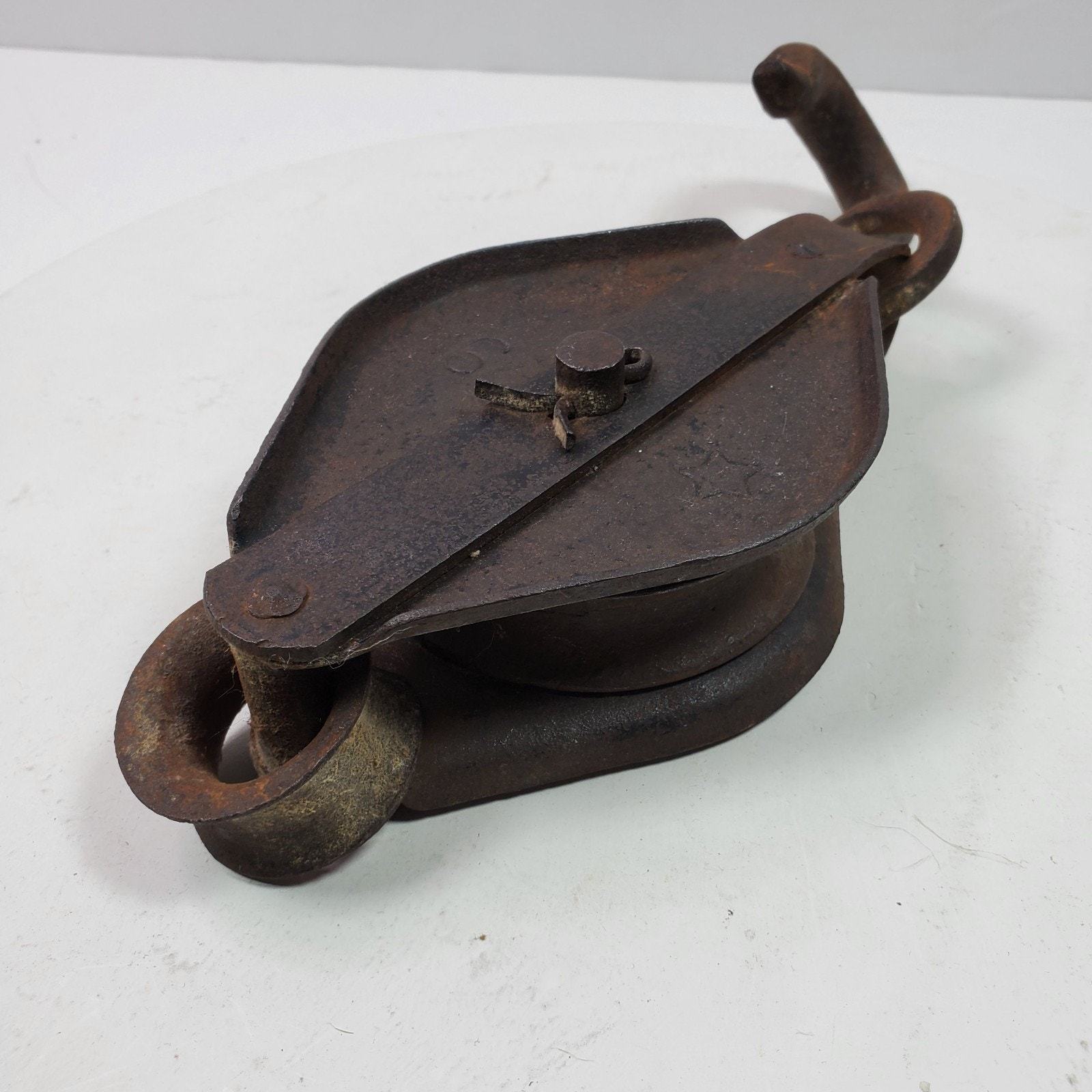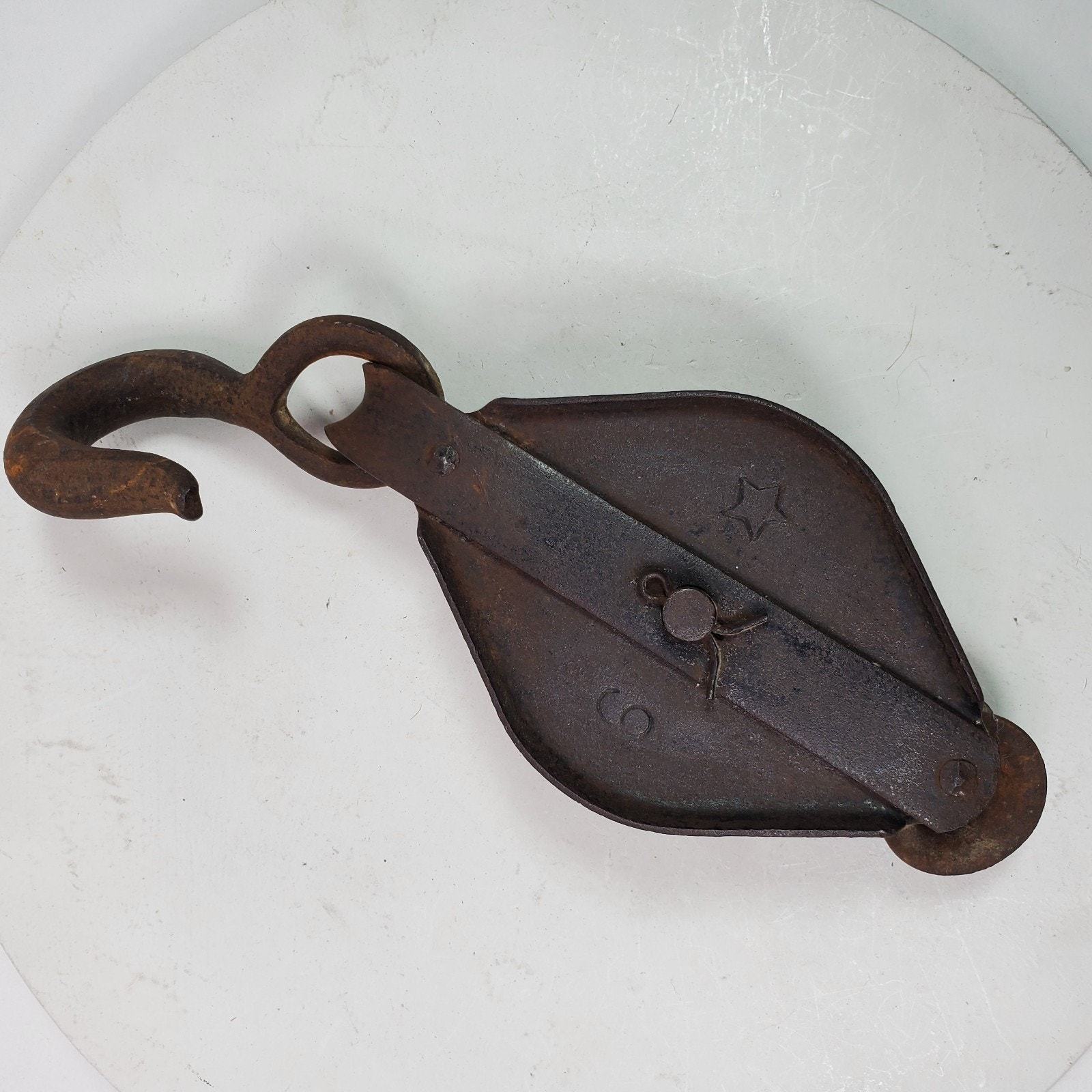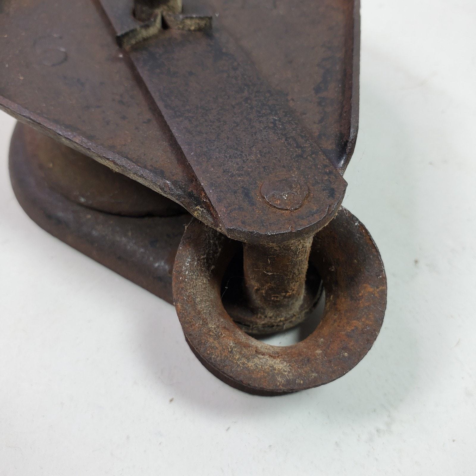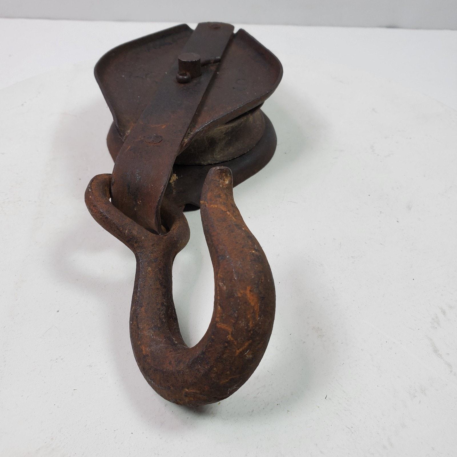 Vintage Farmhouse Pulley Hook Steel Wheel Barn Industrial Rustic