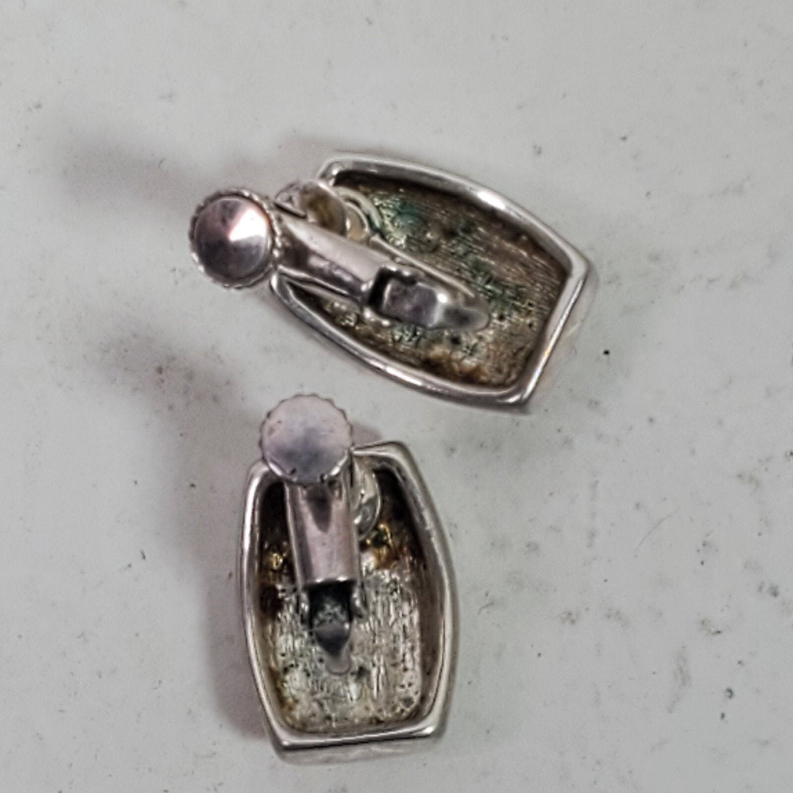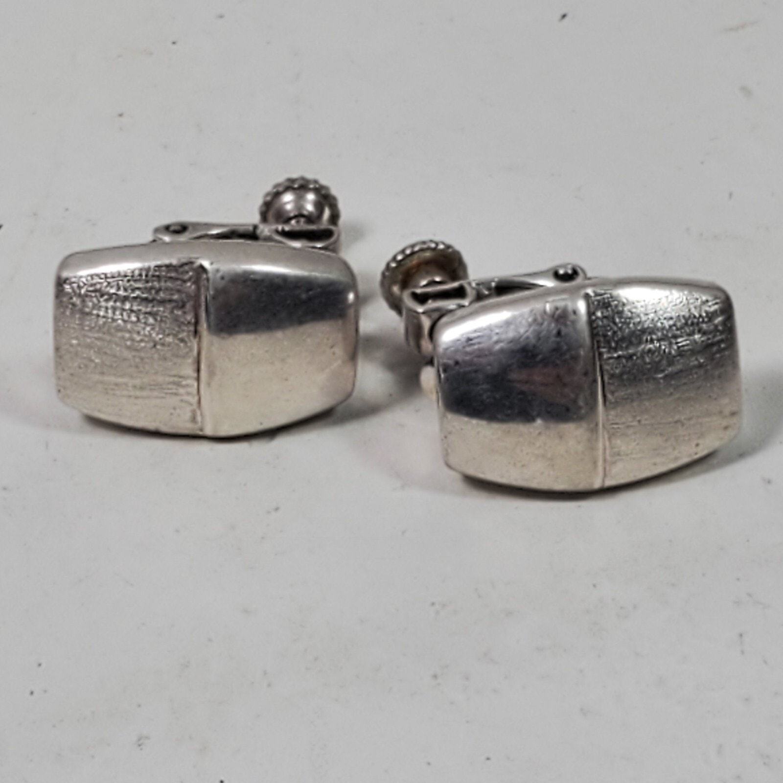 Vintage Screw Back Earrings Silver Tone Block Style .75 Inch