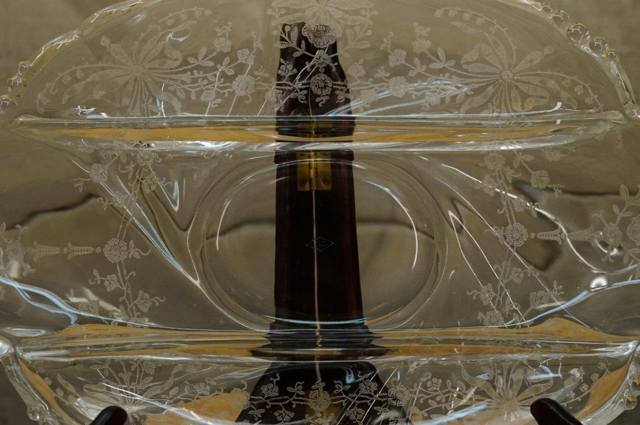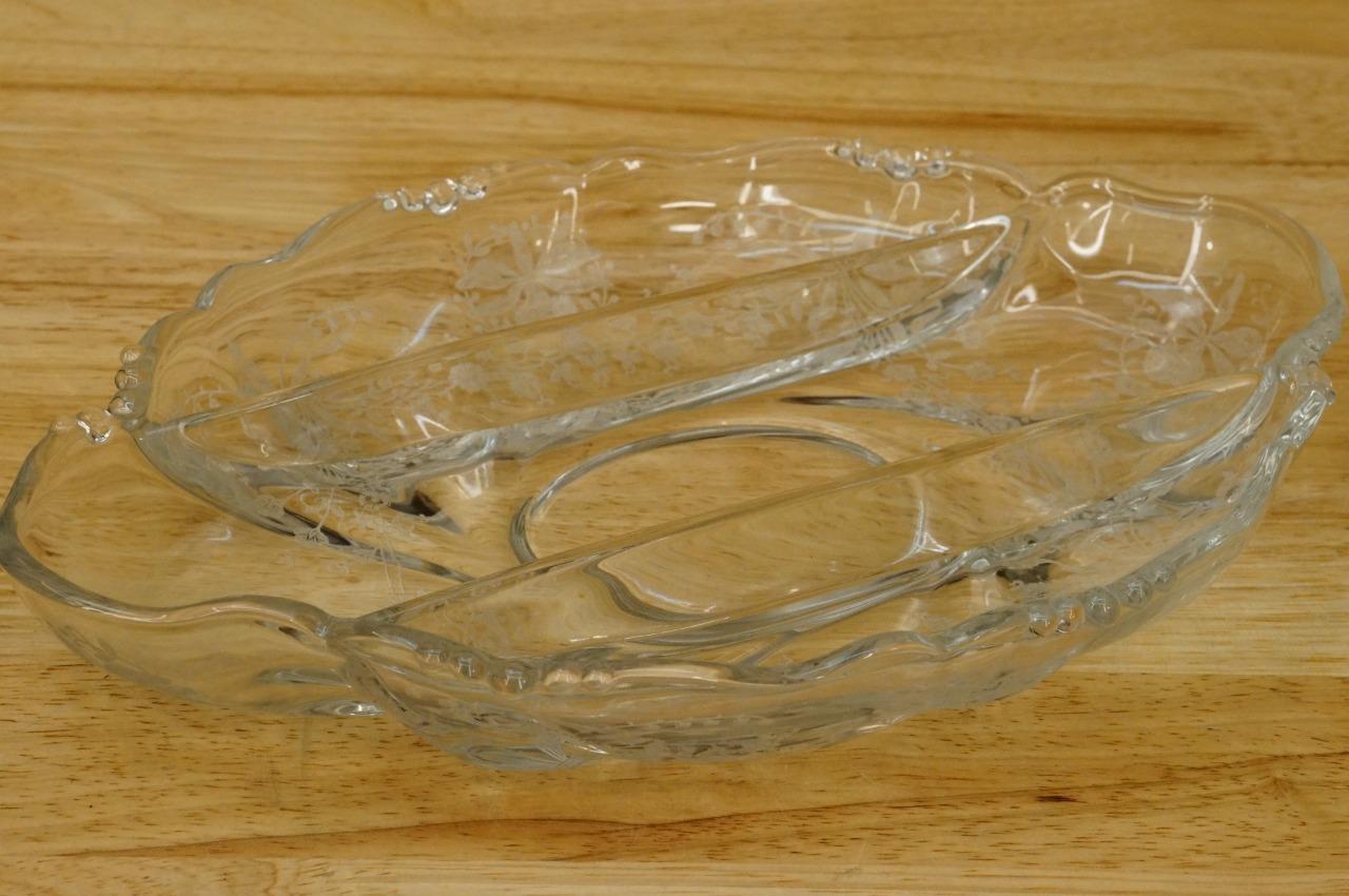 Vintage Heisey Crystal Elegant Glass Orchid Pattern Oblong Relish Dish 11.5" by 7.75". Signed in the base. No chips or cracks. No smoke or pet odor.