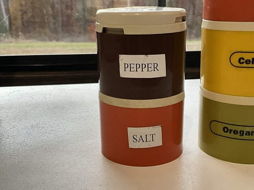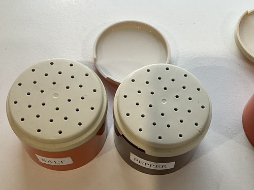 Vintage Lot Of 5 Tupperware Stackable Spice Salt Pepper Containers