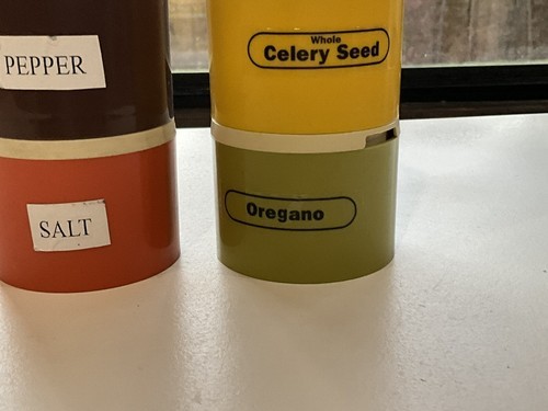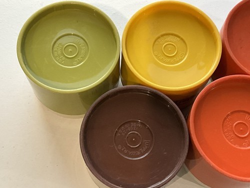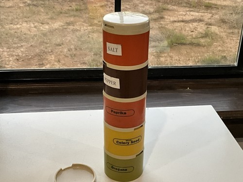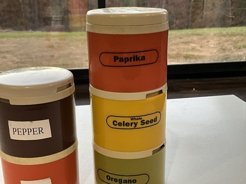 This is a cute lot of 5 vintage Tupperware stackable spice containers. They are labeled ad are in good condition. There are two lids and all stack. These are so cute and perfect for use or a collection!
