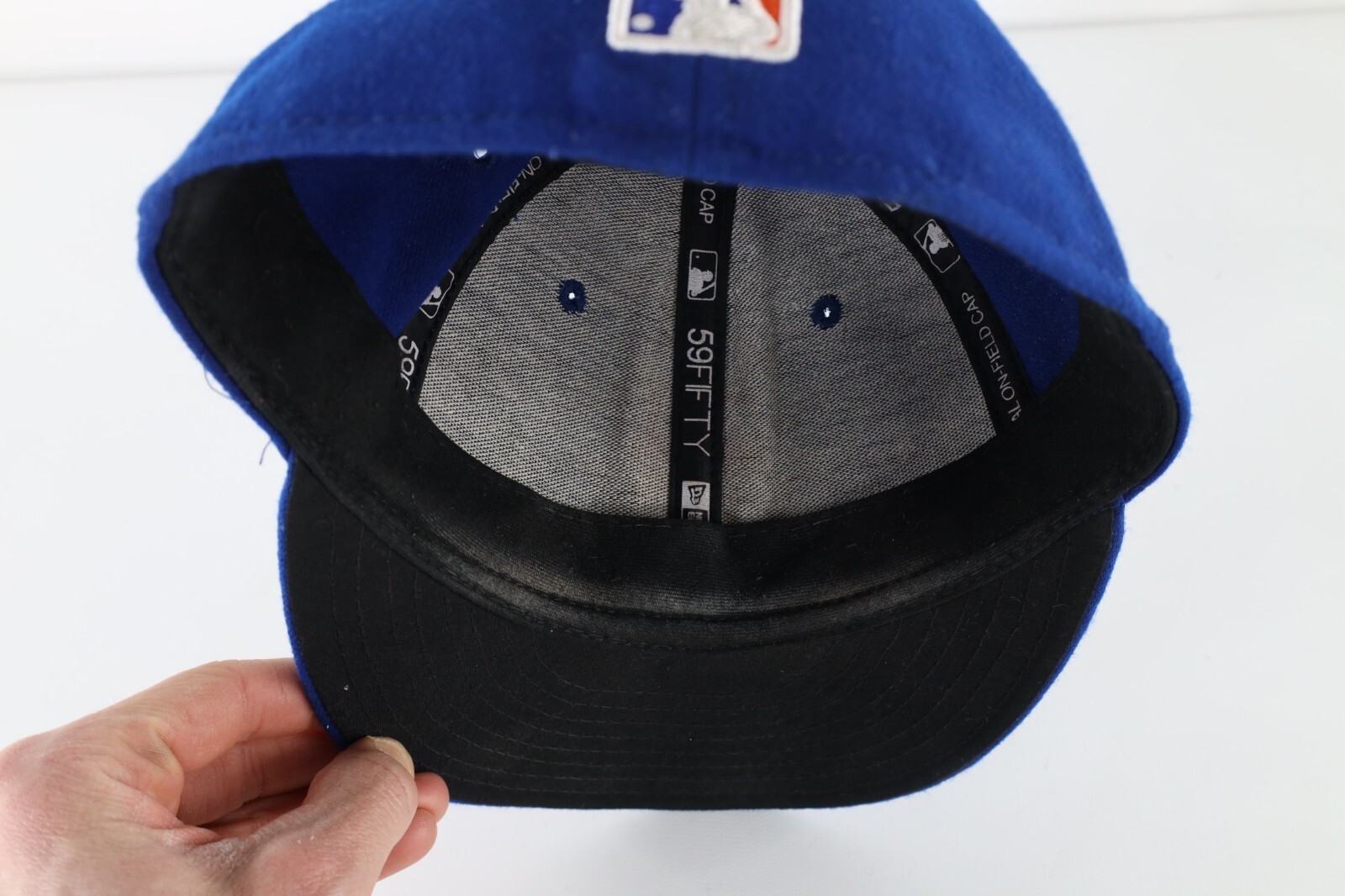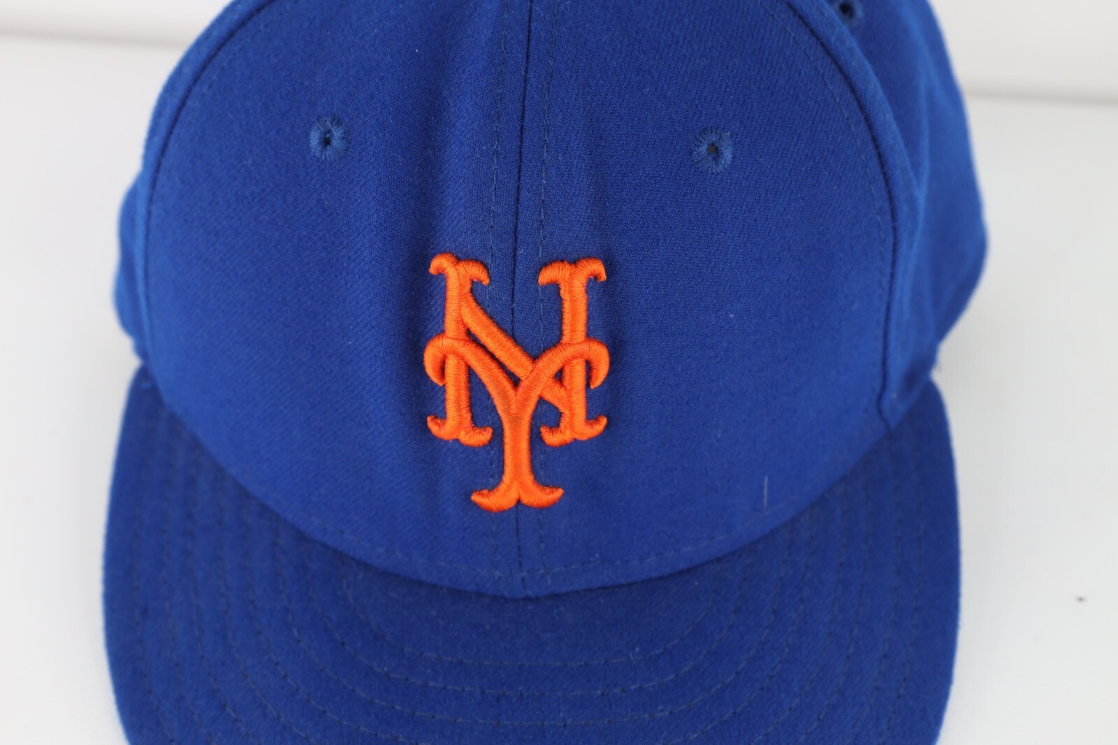 Vintage New Era Distressed New York Mets Baseball Fitted Hat Cap Blue 7 1/8 USA