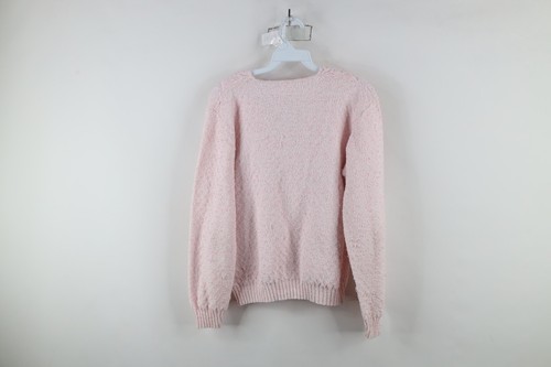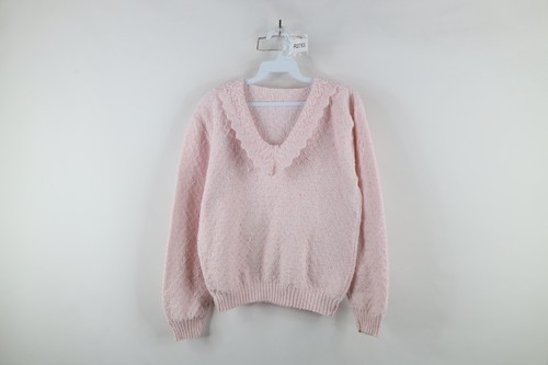 Vintage 90s Streetwear Womens Medium Textured Frill Collar Knit Sweater Pink
