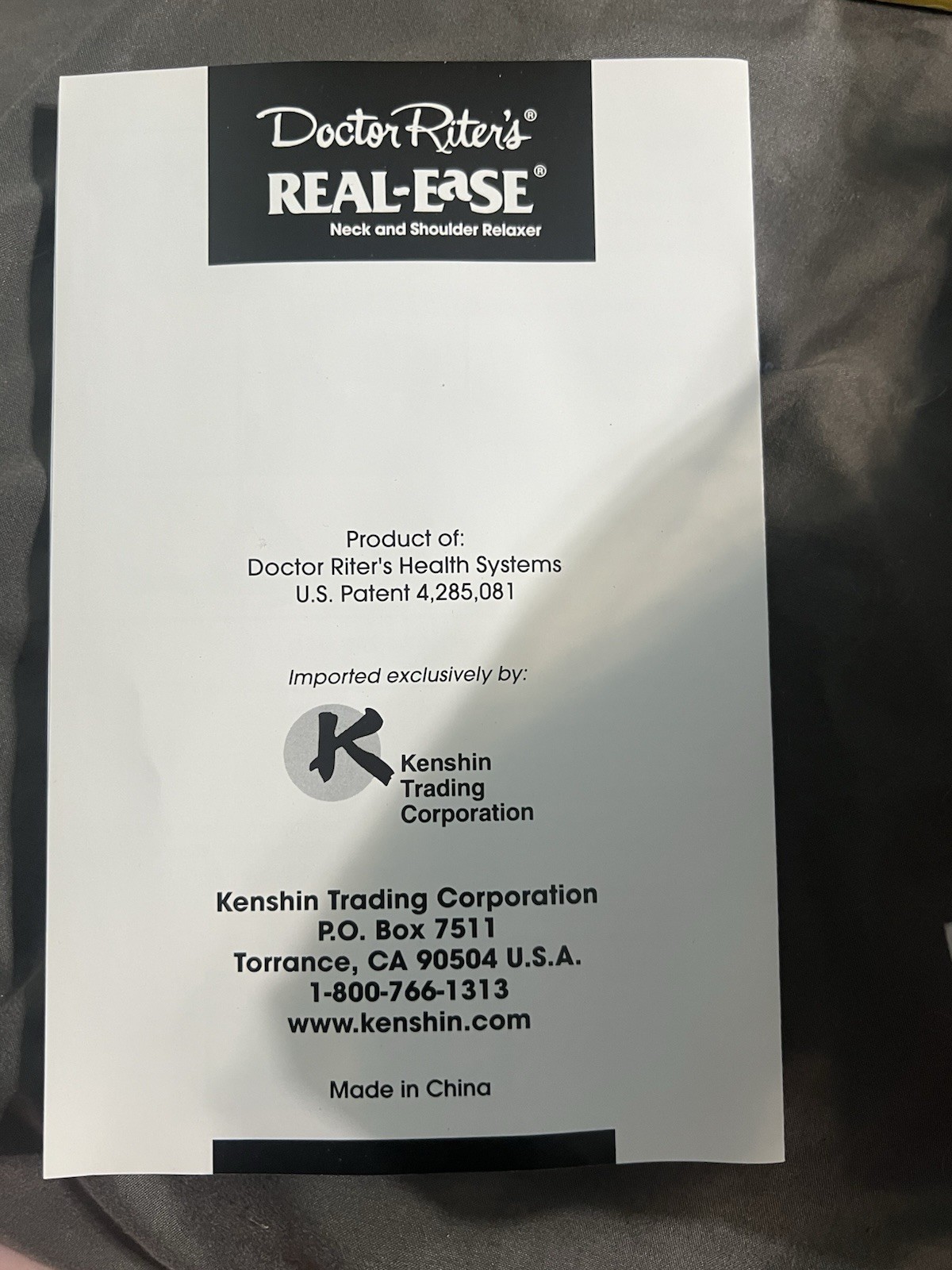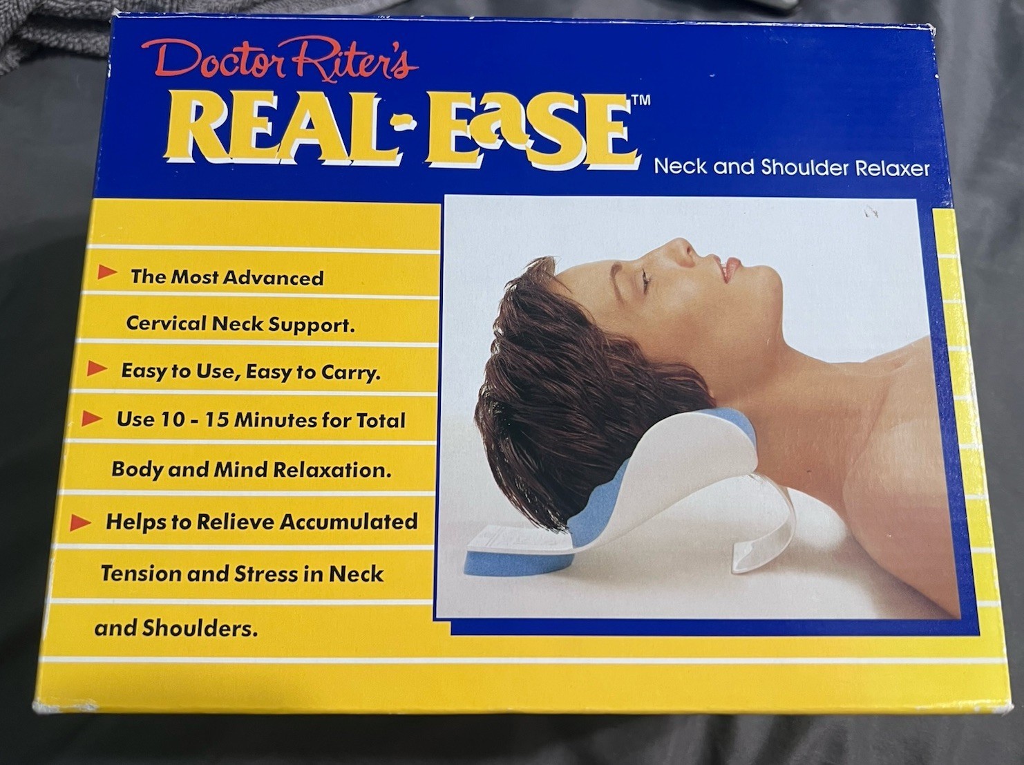 Doctor Riter's Real Ease Neck Shoulder Relaxer Cervical Support 'New Improved'. Preowned in good used condition. The box has some wear and writing on it