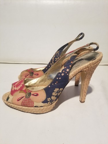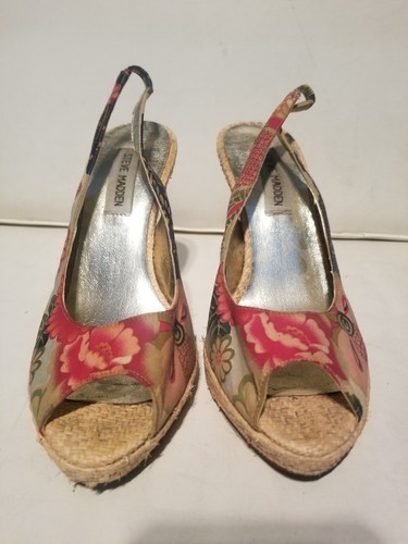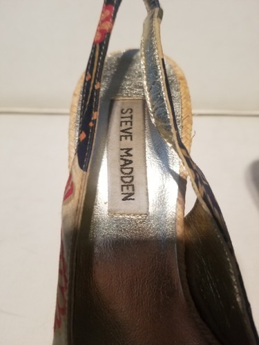 The Steve Madden Tiki Platform Wicker Stiletto Heels are a stylish and unique pair of Hawaiian-themed sandals perfect for a variety of occasions. With a multicolor floral pattern and ultra-high stiletto heels, these vintage-inspired sandals feature a slip-on closure and slingback style for a chic and comfortable look. Made with cotton upper material and a polyurethane insole, these size 7 sandals are a fashionable choice for those looking to make a statement with their footwear. There is a little wicker loose around soles, almost not noticeable. bOx1 I use recycled materials for packaging whenever possible. Please ask questions as all sales are final.