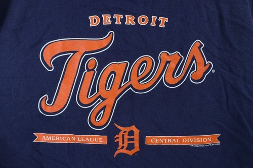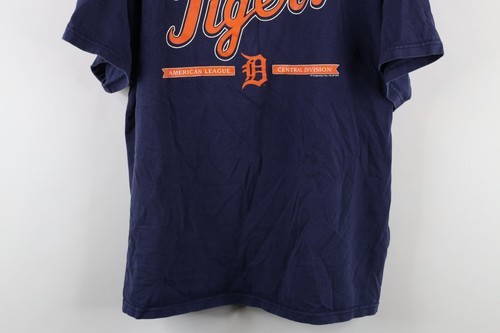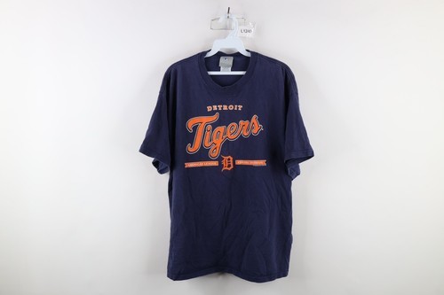 Vintage Y2K Mens XL Faded Spell Out Detroit Tigers Baseball T-Shirt Blue Cotton