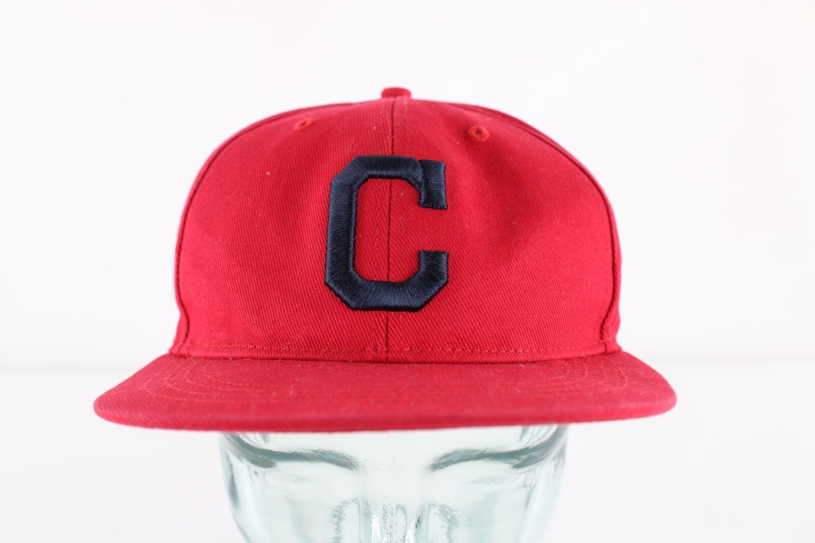 Vintage 90s Faded Cleveland Indians Baseball Block C Snapback Hat Cap Red