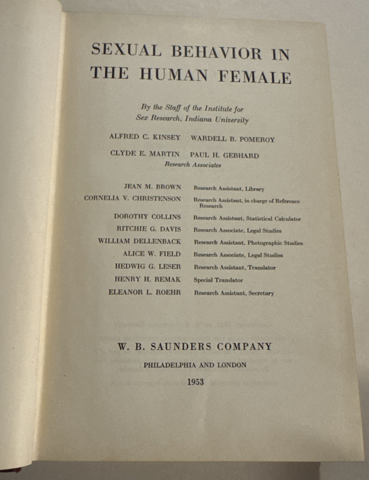 Sexual Behavior in the Human Female - Alfred Kinsey 1953 Saunders 1st Edition
