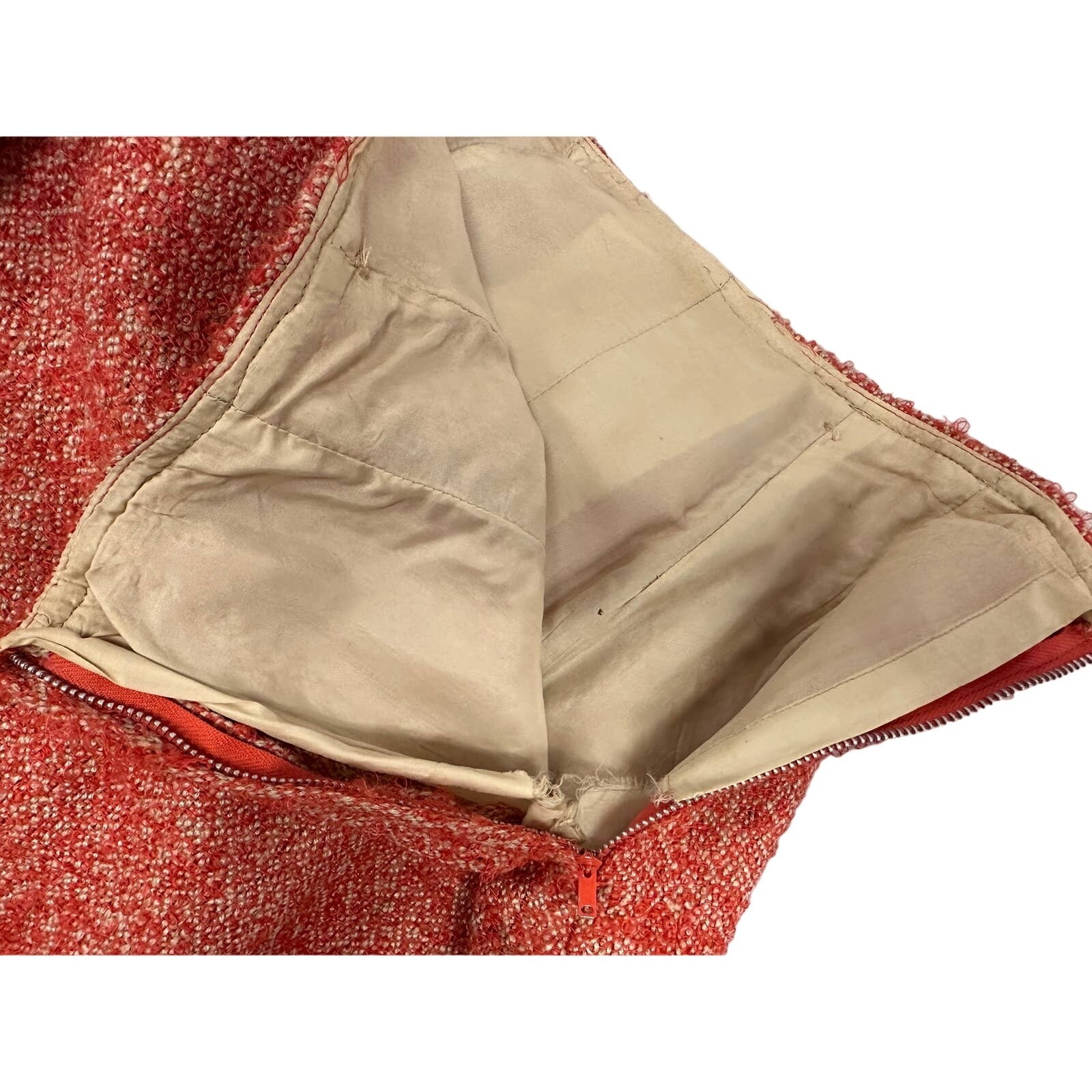 Excellent vintage condition overall. Clean and strong with no stains or holes. The skirt lining has a small tear at the zipper ? minor, does not affect wear.