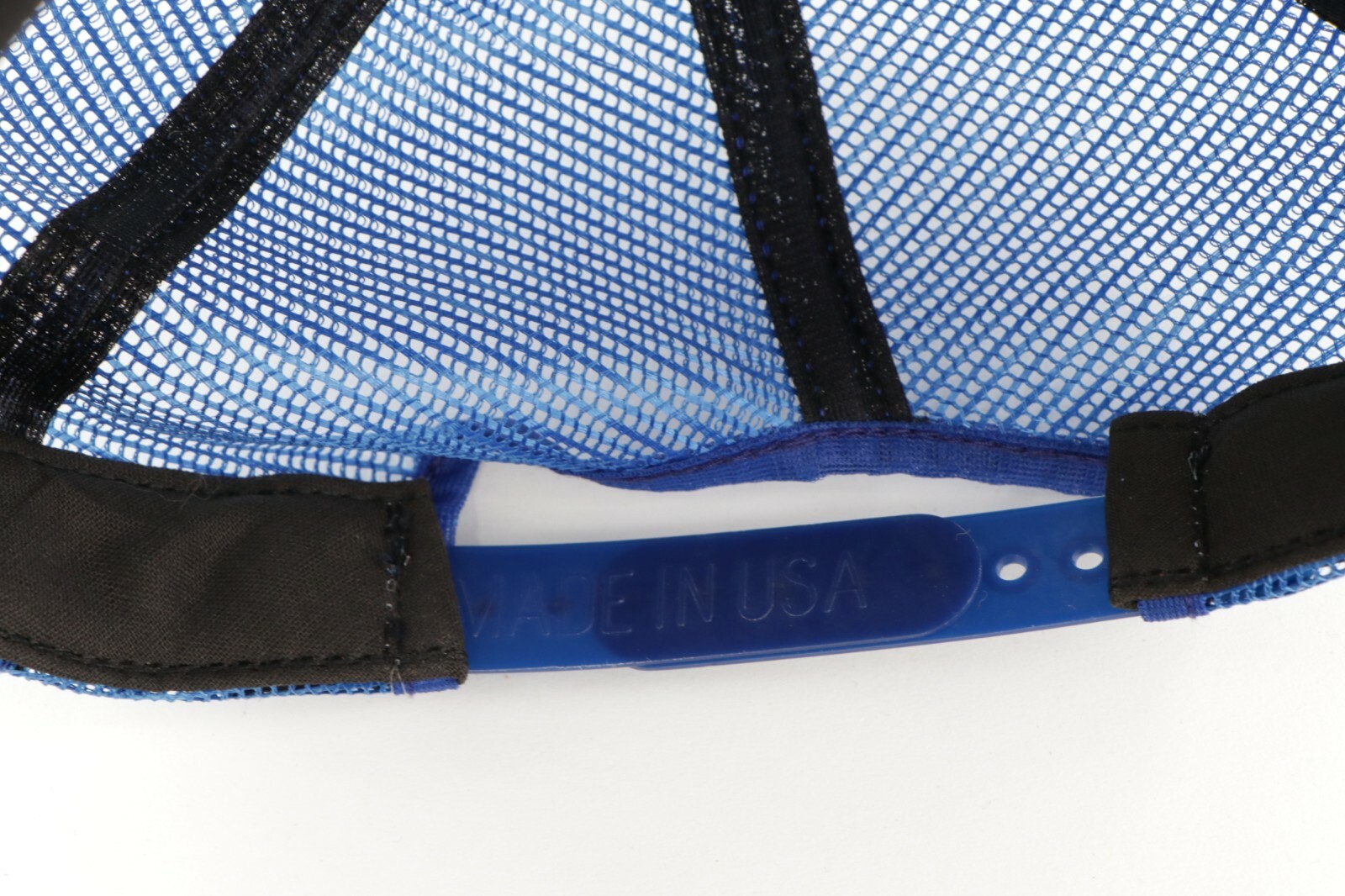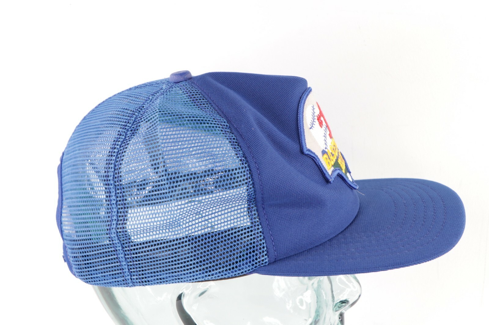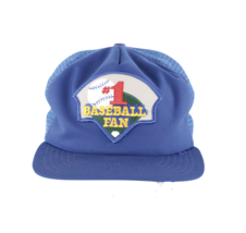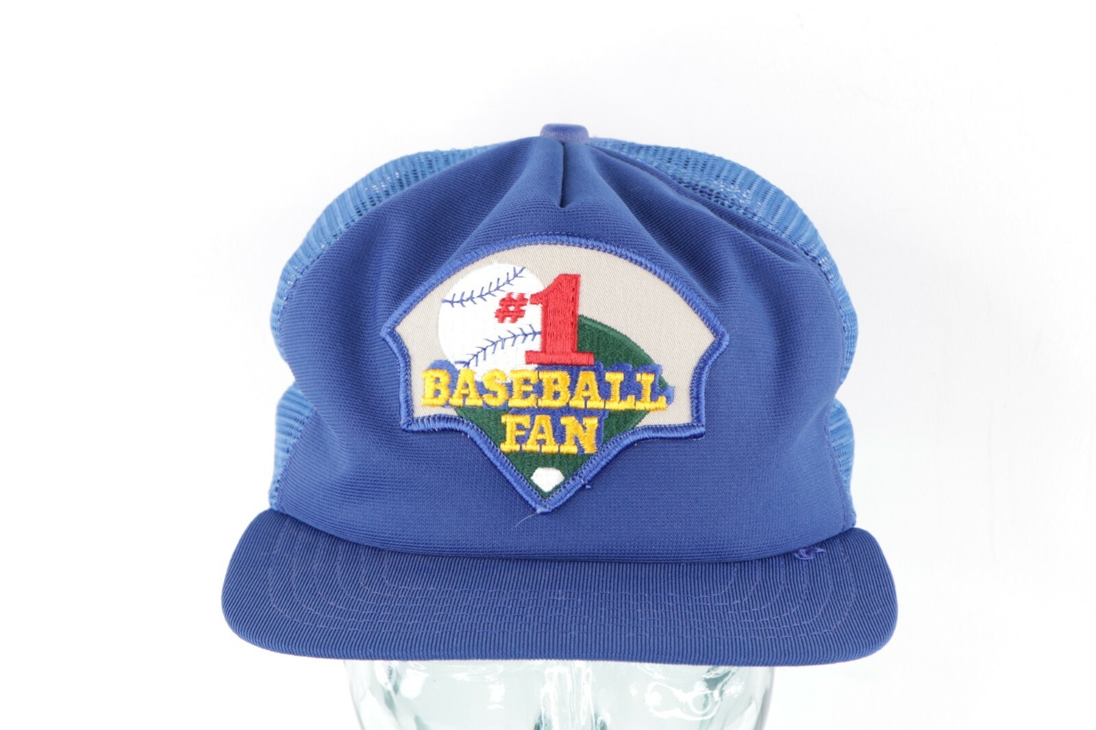 Vintage 70s #1 Baseball Fan Patch Spell Out Trucker Hat Blue Mesh Snapback USA