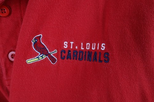 Vintage 90s Mens Size XL Spell Out St Louis Cardinals Baseball Polo Shirt Red
