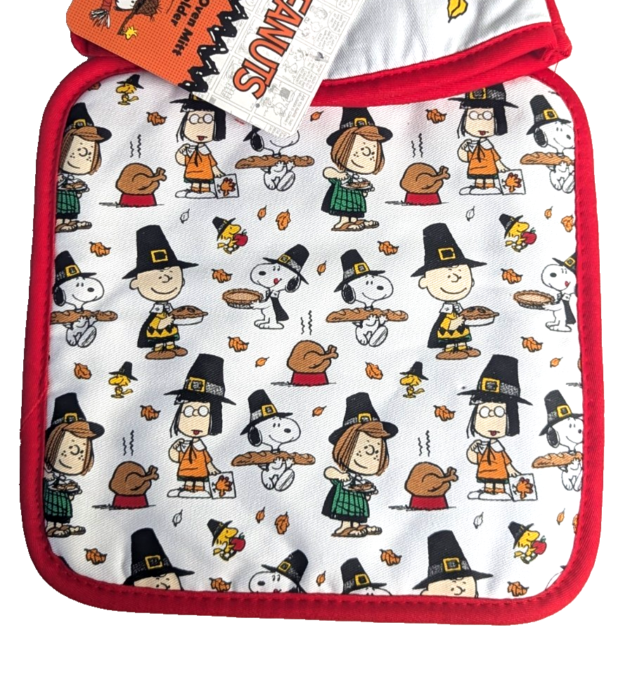 Peanuts Snoopy and Friends Oven Mitt Potholder Thanksgiving Pilgrims Gift NEW