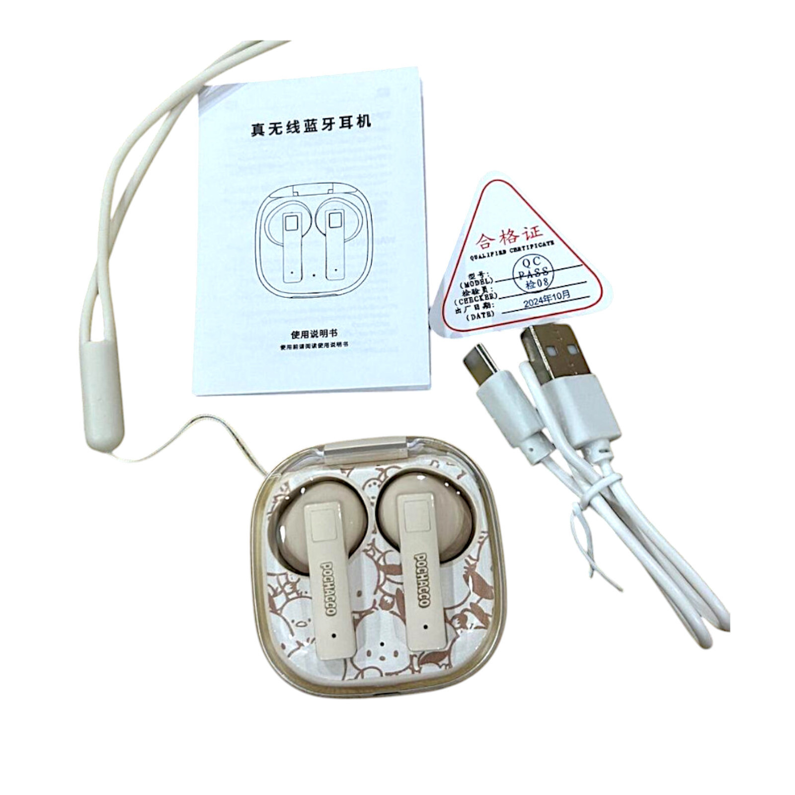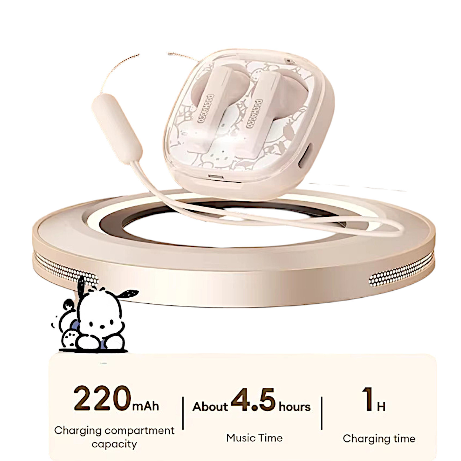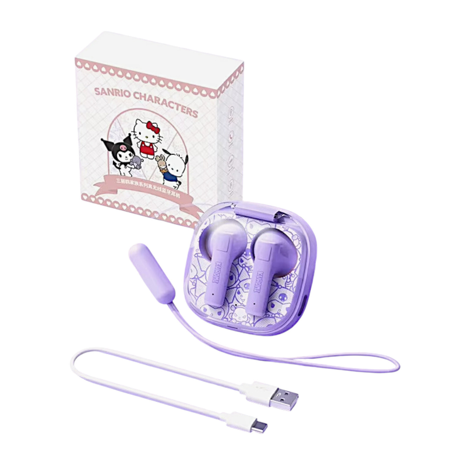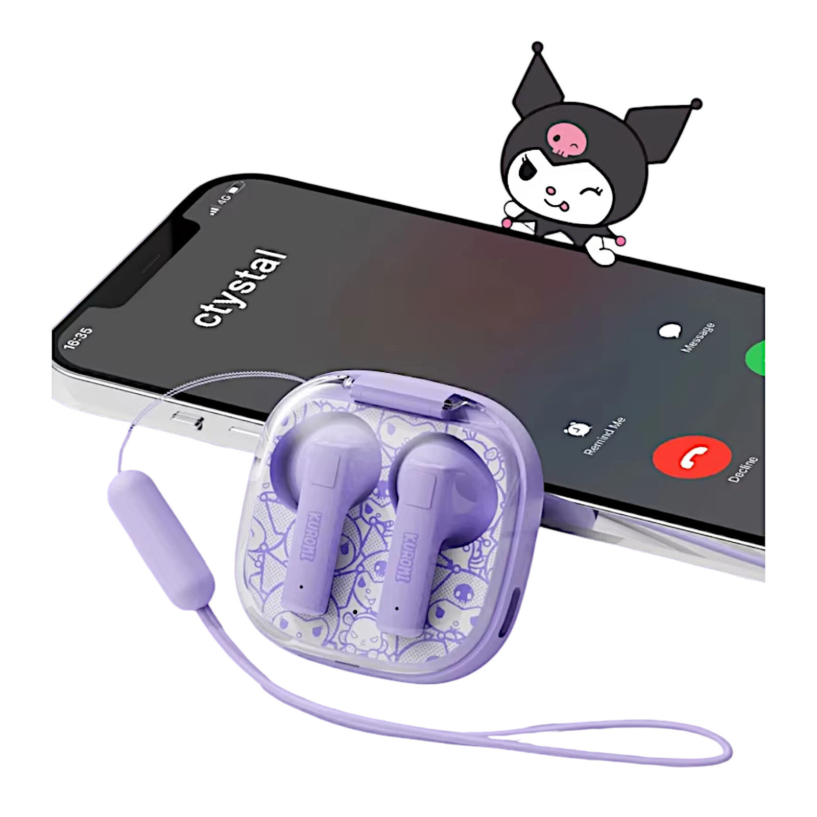 Kuromi Kitty Wireless Bluetooth 5.4 Earphones Clear Case Mic Built-In Earbuds