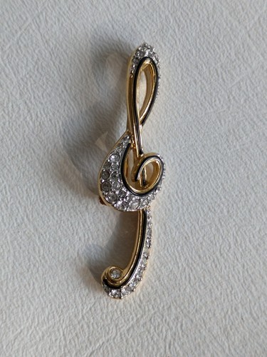 Swarovski Music Treble Clef Brooch Pin Black Enamel Clear Crystal Rhinestone