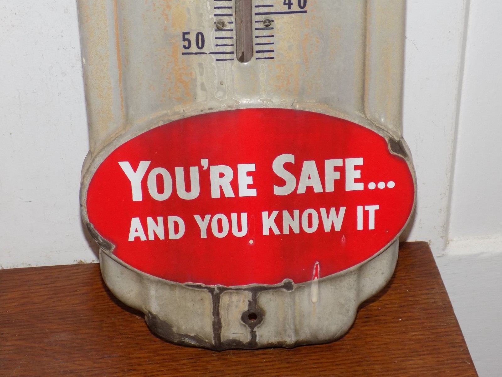 Vintage Prestone Your Safe and You Know It Porcelain Thermometer