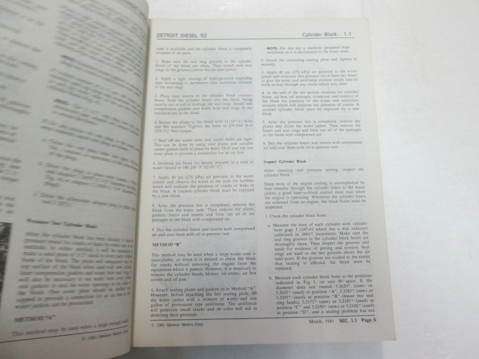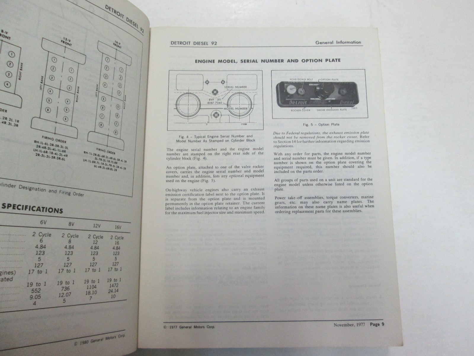1981 Detroit Diesel Allison Engines Series 92 Service Repair Shop Manual WORN 81