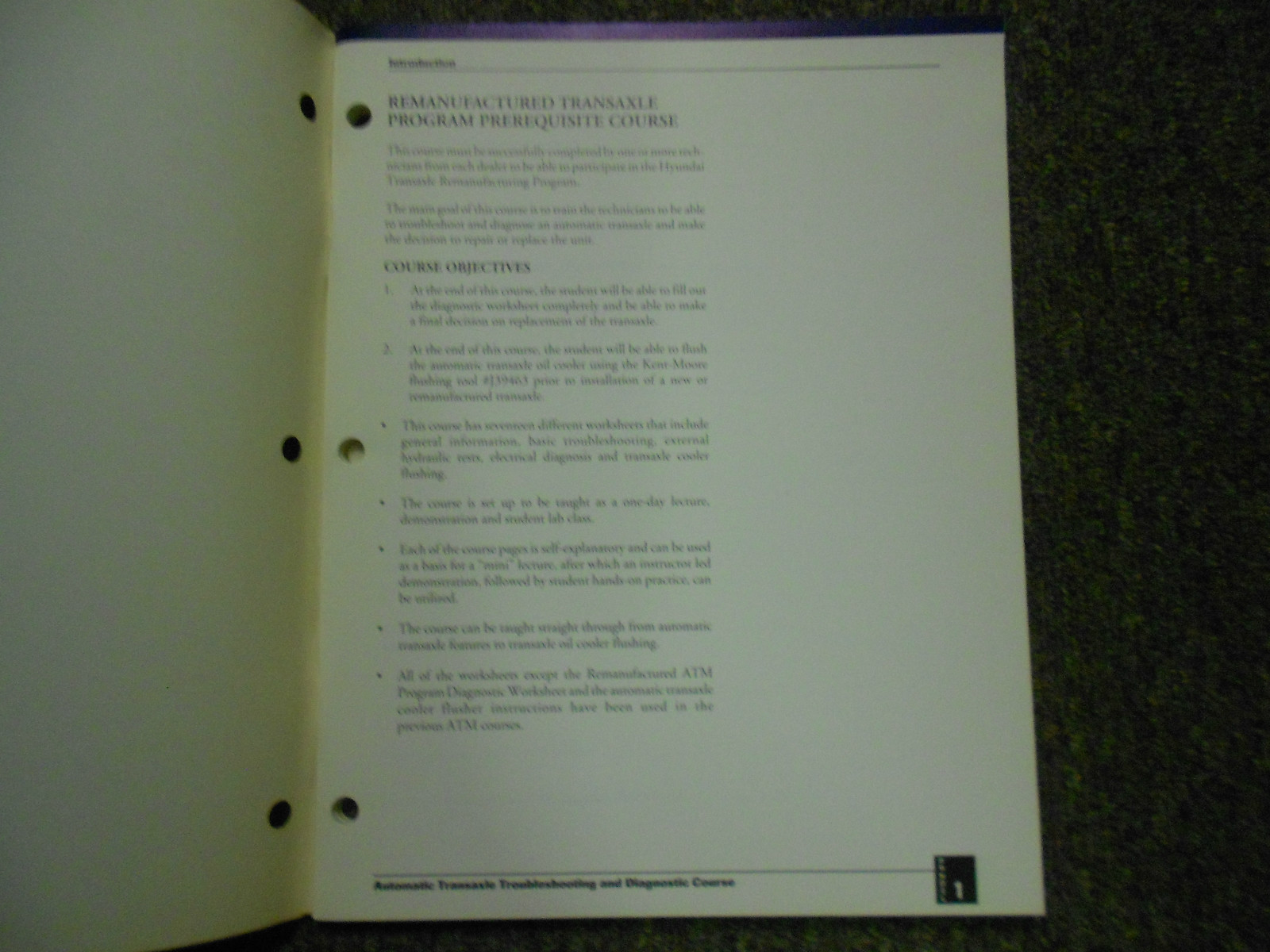 1994 Hyundai Automatic Transaxle Risoluzione dei problemi e Manuale del corso diagnostico