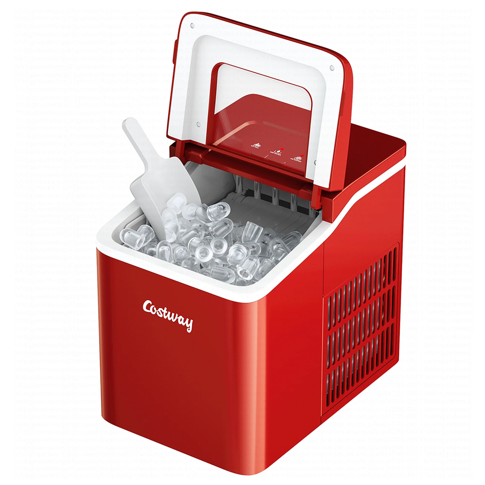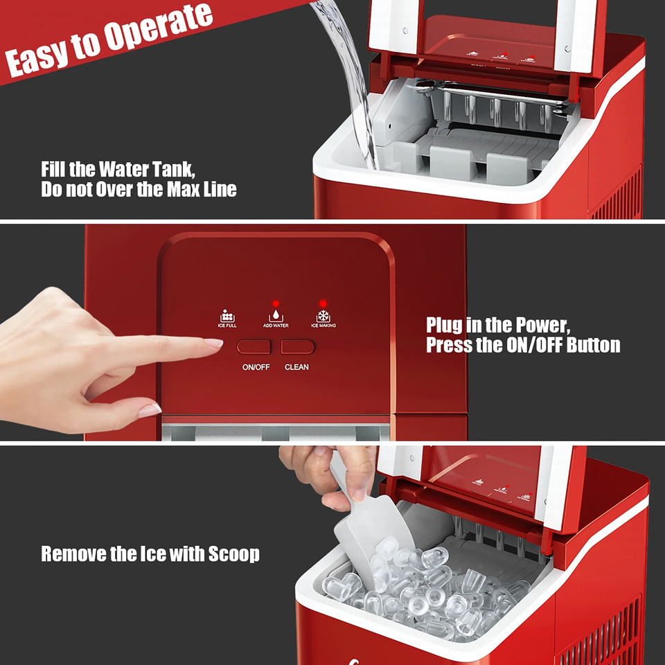 Portable Ice Maker Machine Countertop 26Lbs/24H Self-Cleaning W/ Scoop Red