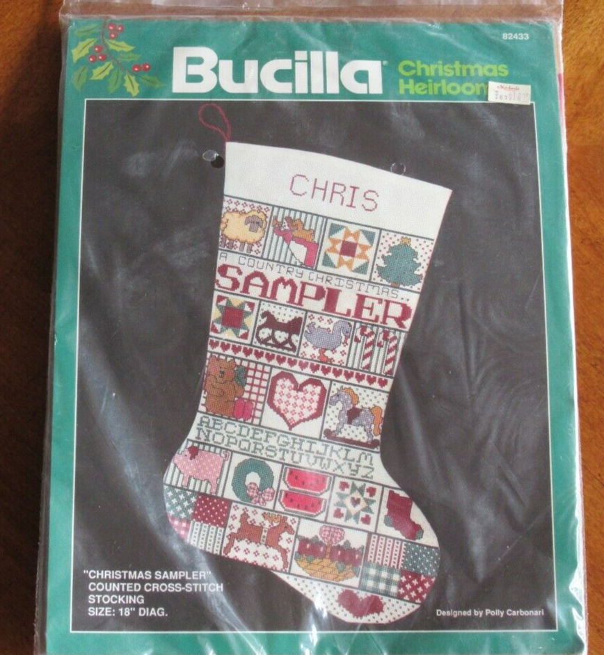 Bucilla Country Christmas Sampler Cross Stitch Stocking 82433 Polly Carbonari