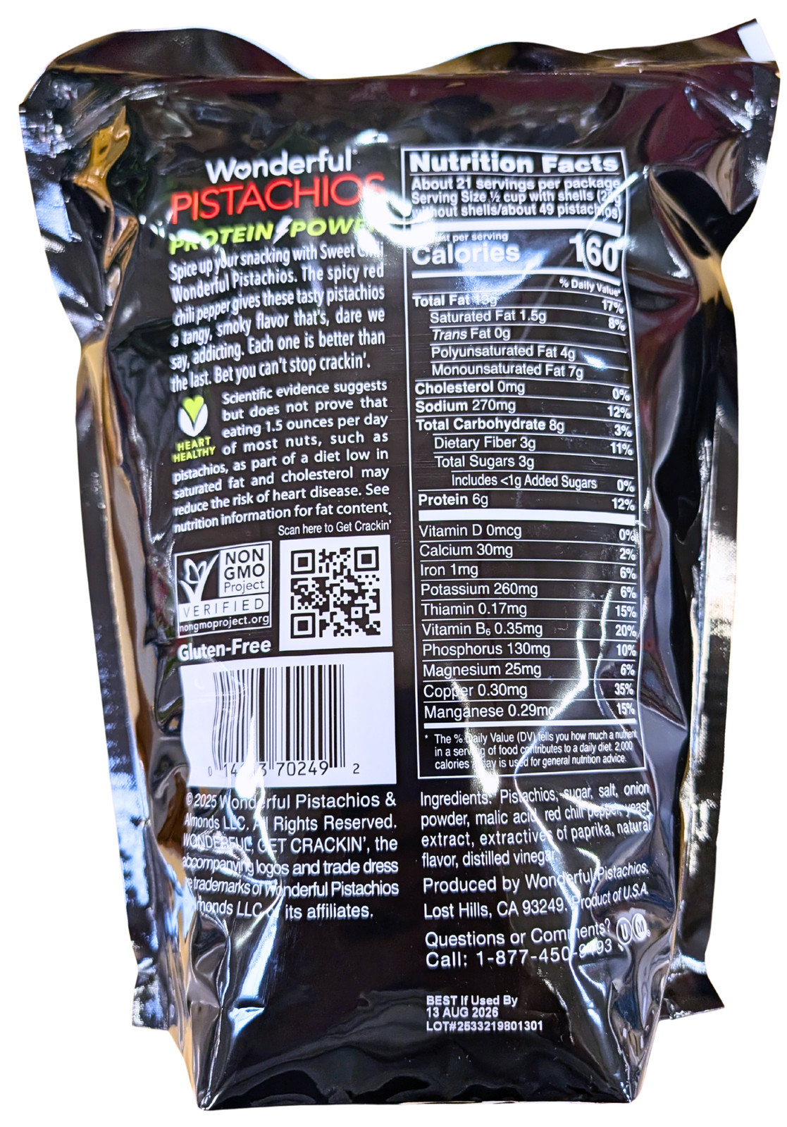 Wonderful Pistachios Sweet Chili 40 Oz EXP 08/2026