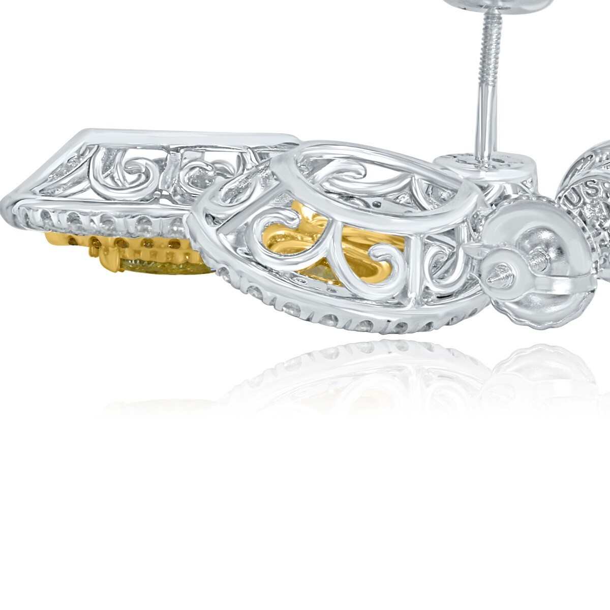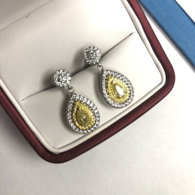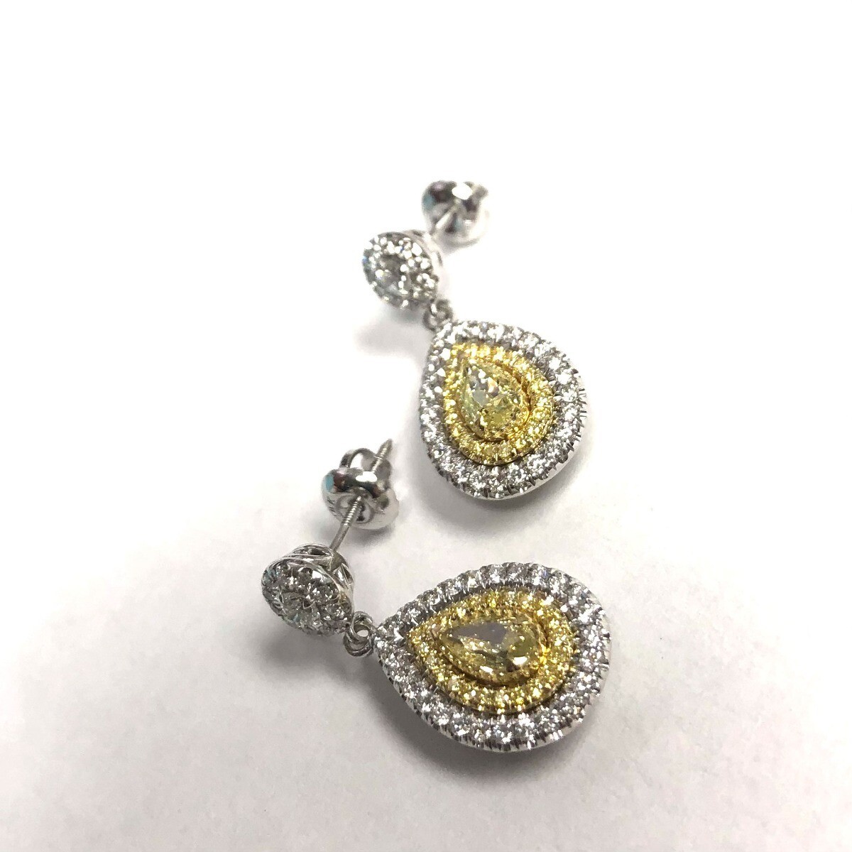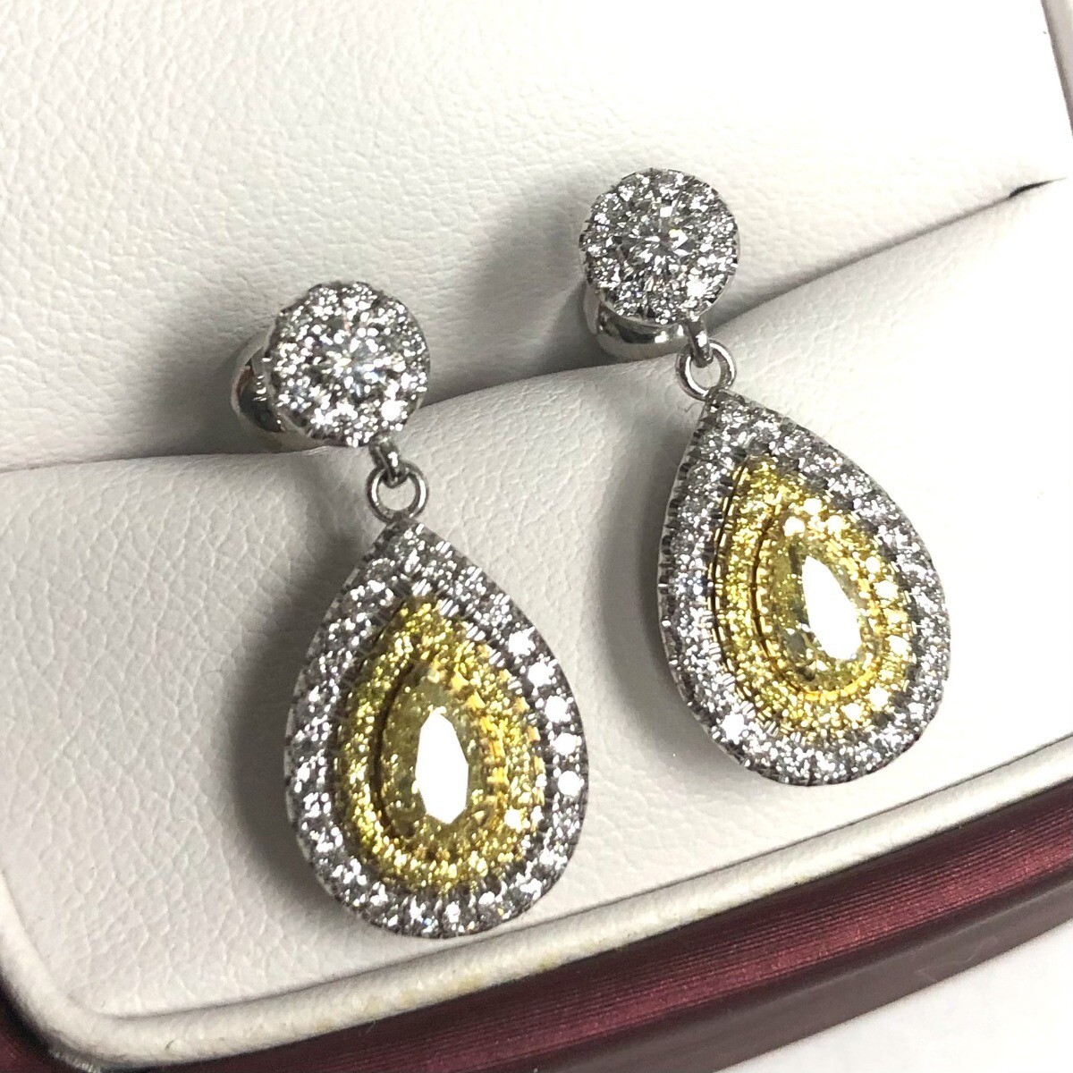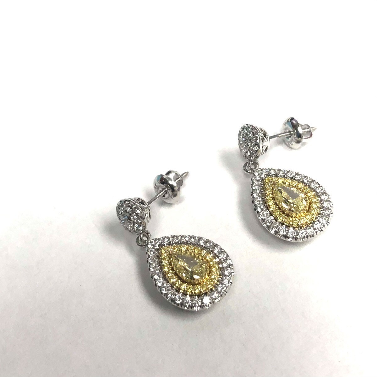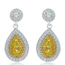 Pear Cut Natural Fancy Yellow 1.62CT Diamond Drop Dangle Earrings 14k White Gold