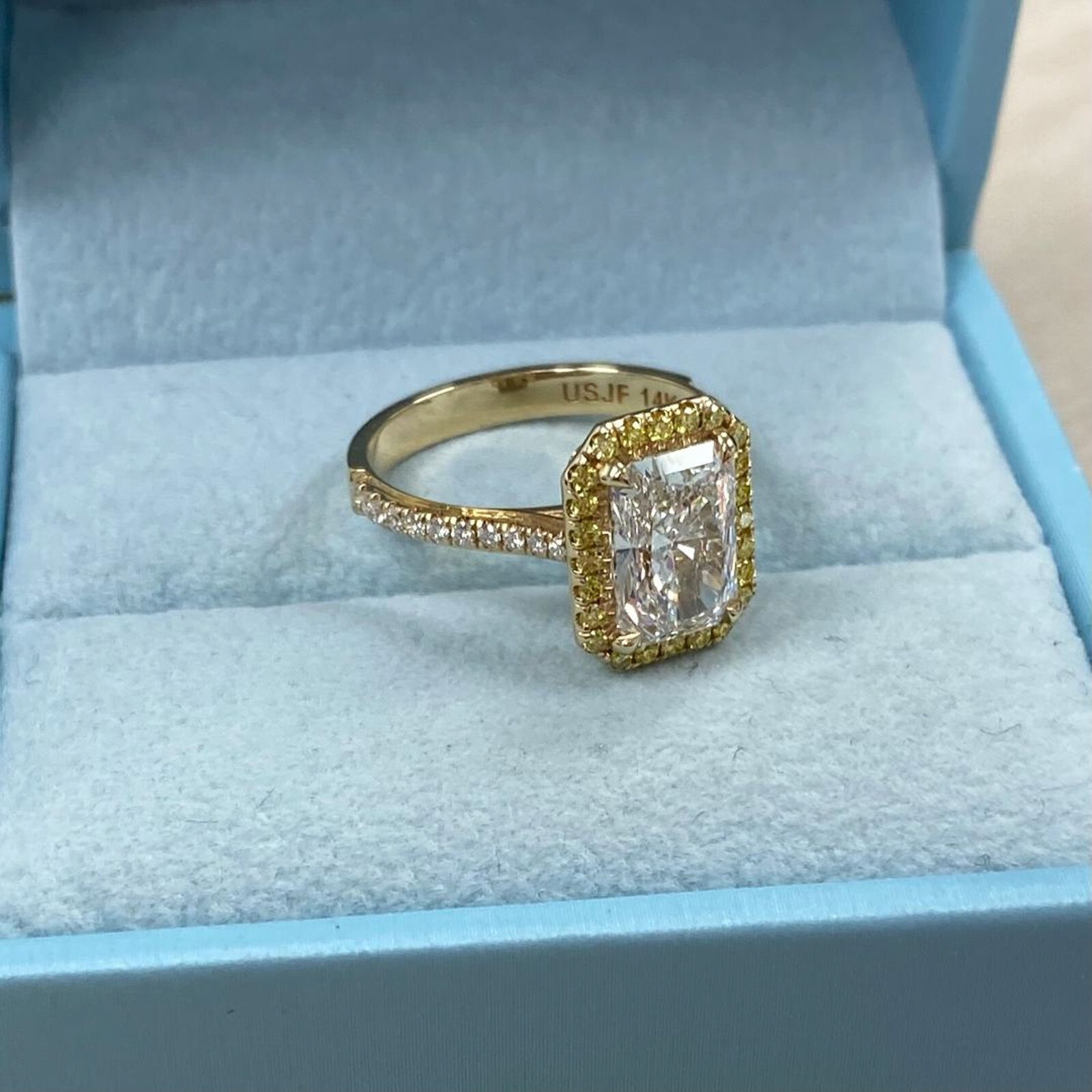 IGI 2.55Ctw E-VVS2 Radiant Cut Lab Grown Diamond Engagement Ring 14k Yellow Gold