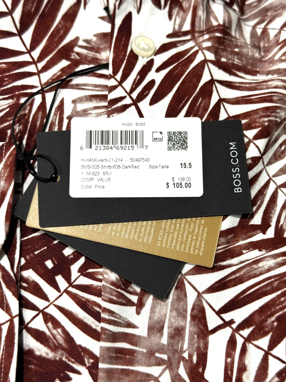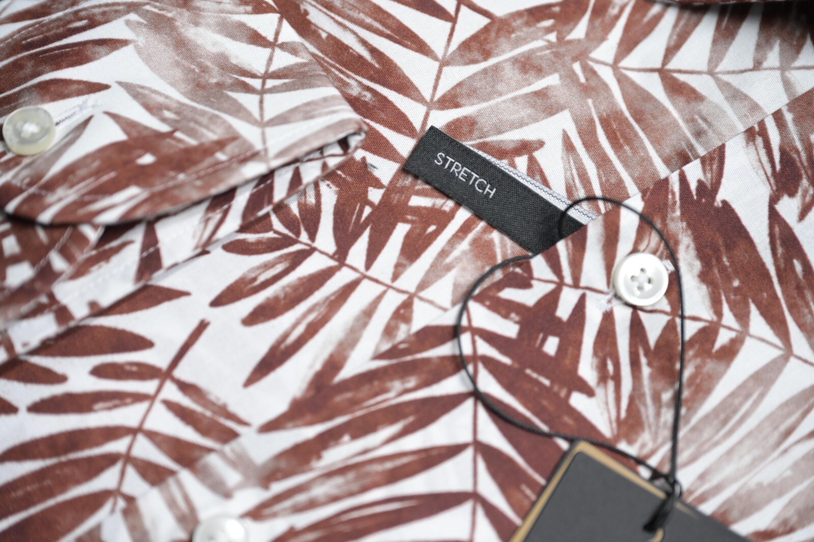 CNT Hugo Boss Mens Hank Kent Leaf Print Slim Fit Stretch Cotton Robe Shirt