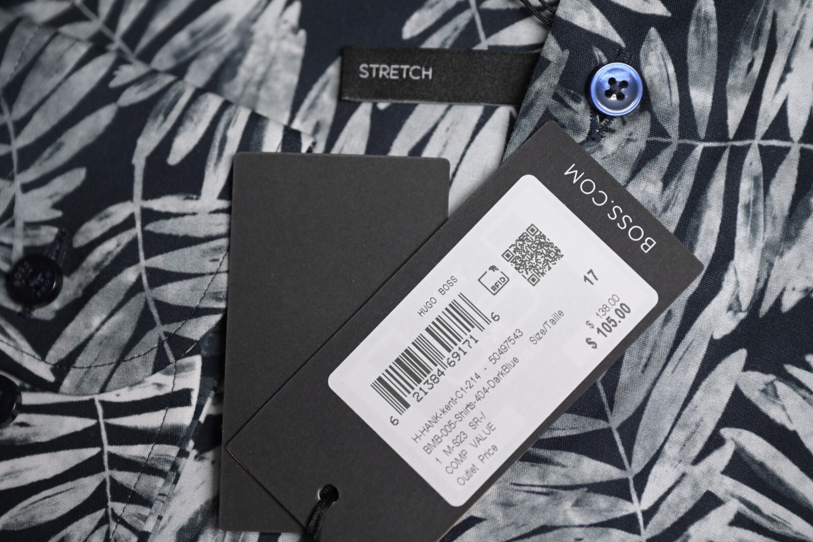 CNT Hugo Boss Mens Hank Kent Leaf Print Slim Fit Stretch Cotton Robe Shirt
