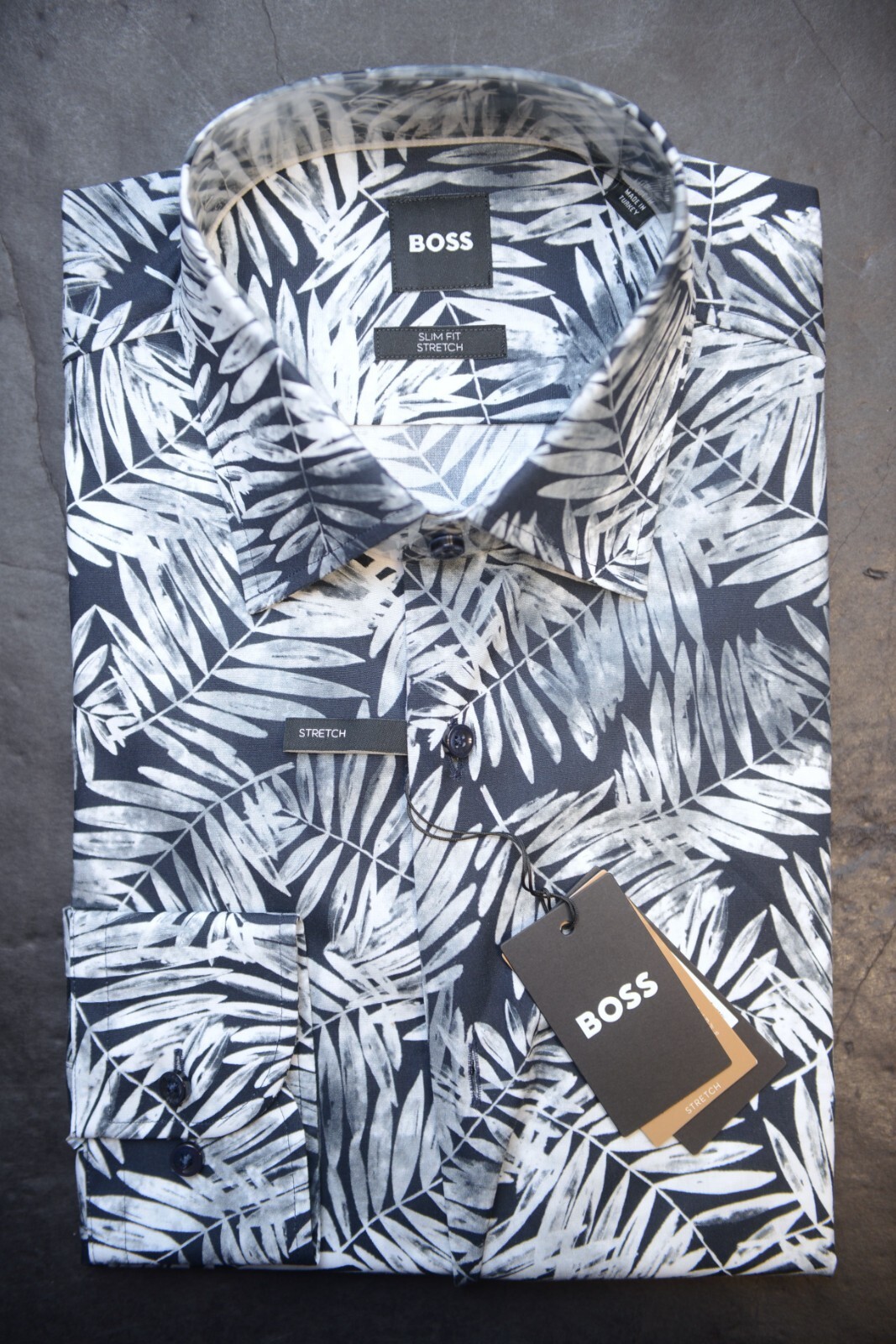 HUGO BOSS Homme Hank Kent Slim Fit Imprimé Feuille Coton Extensible Robe Chemise