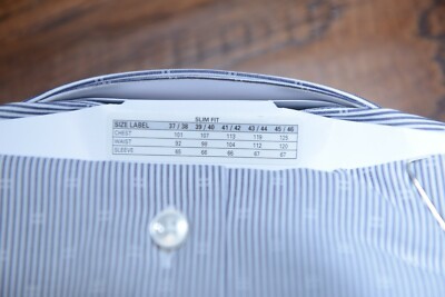 HUGO BOSS Homme Jesse Slim Fit Facile Fer Coton Marine Raye Robe Chemise 43 17