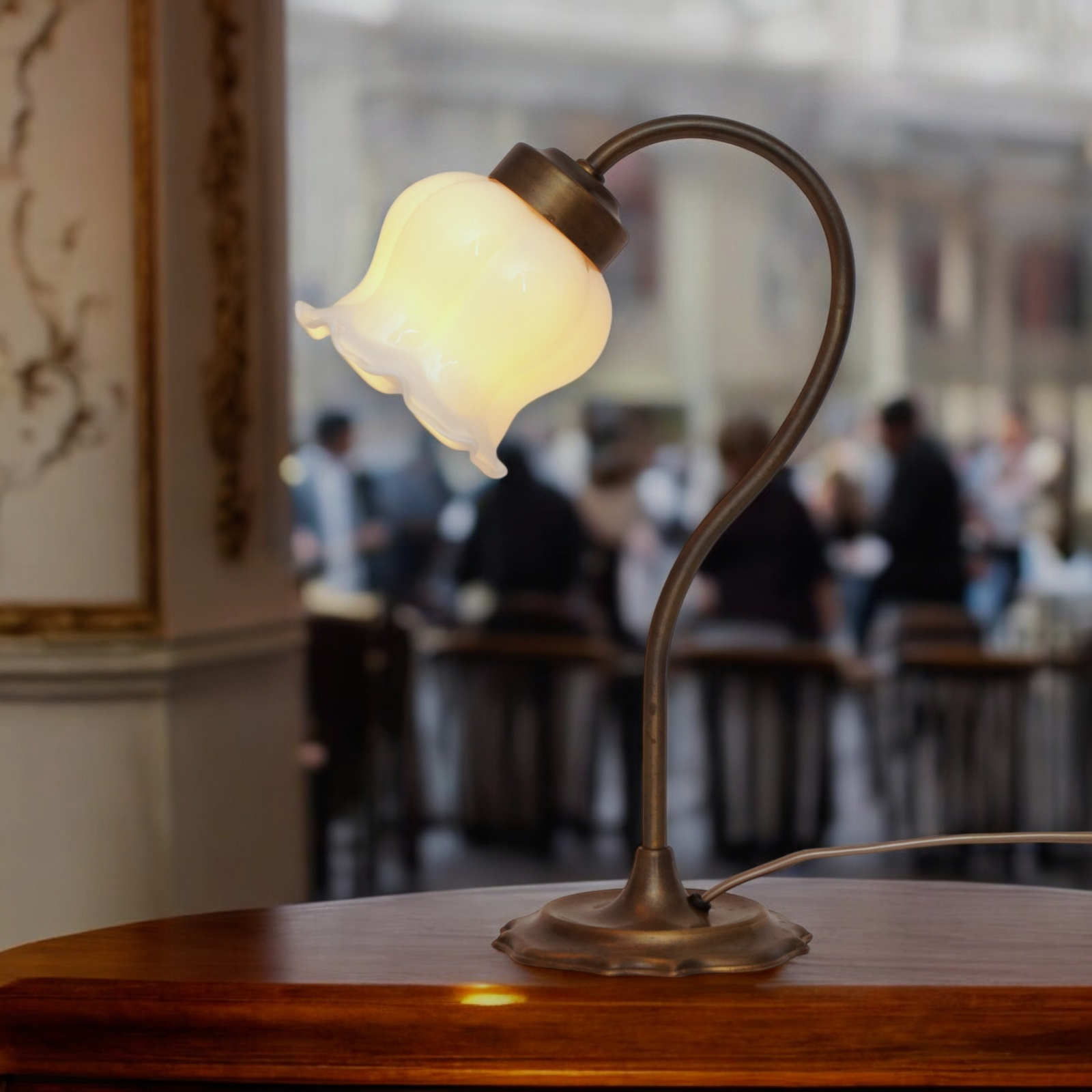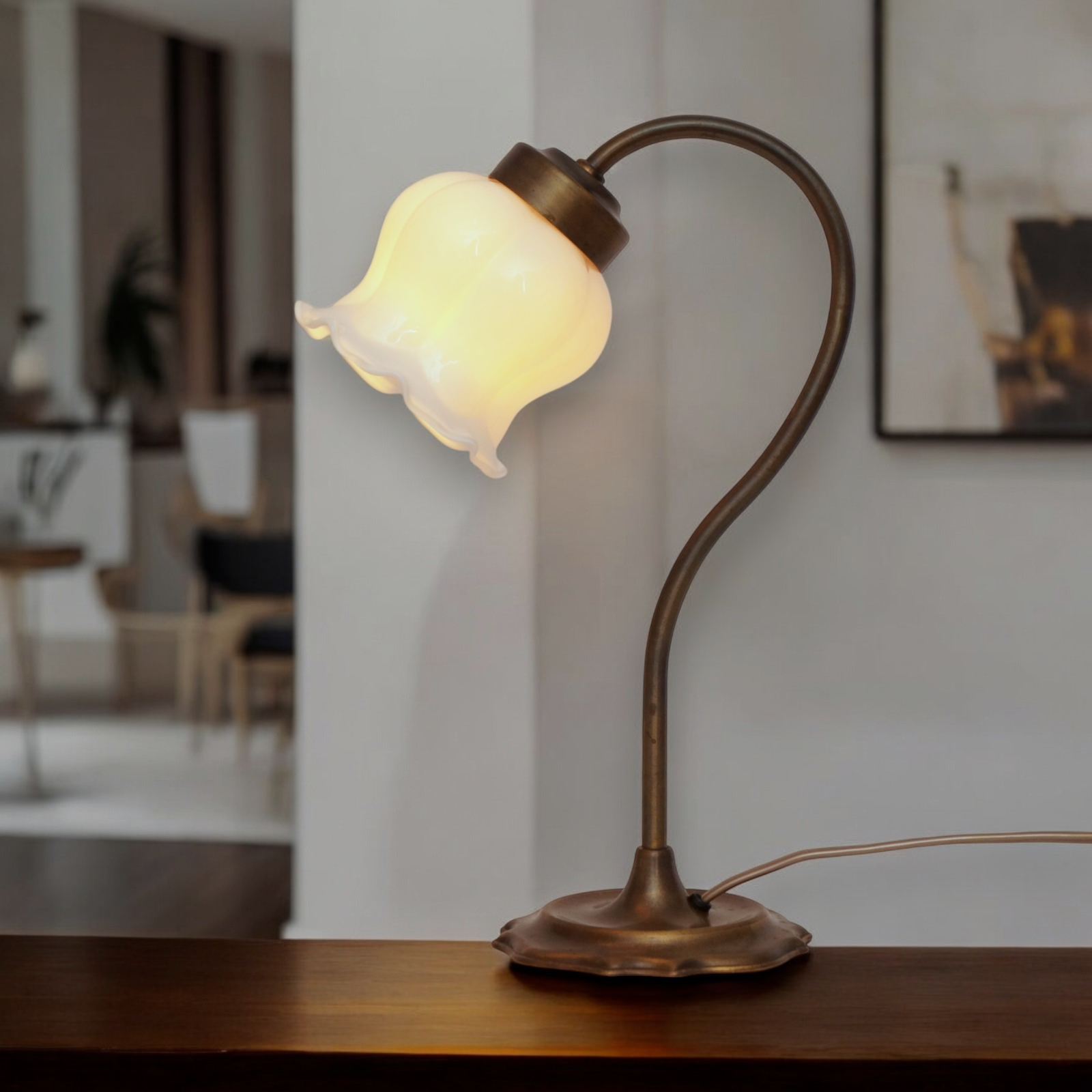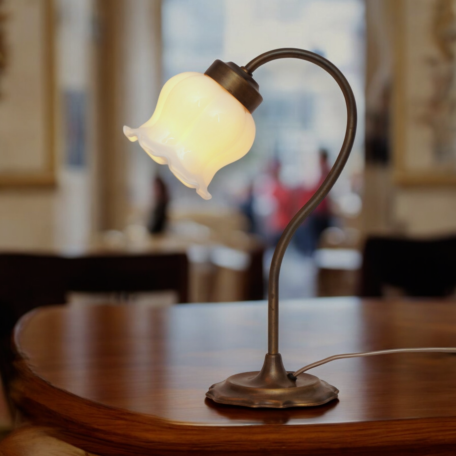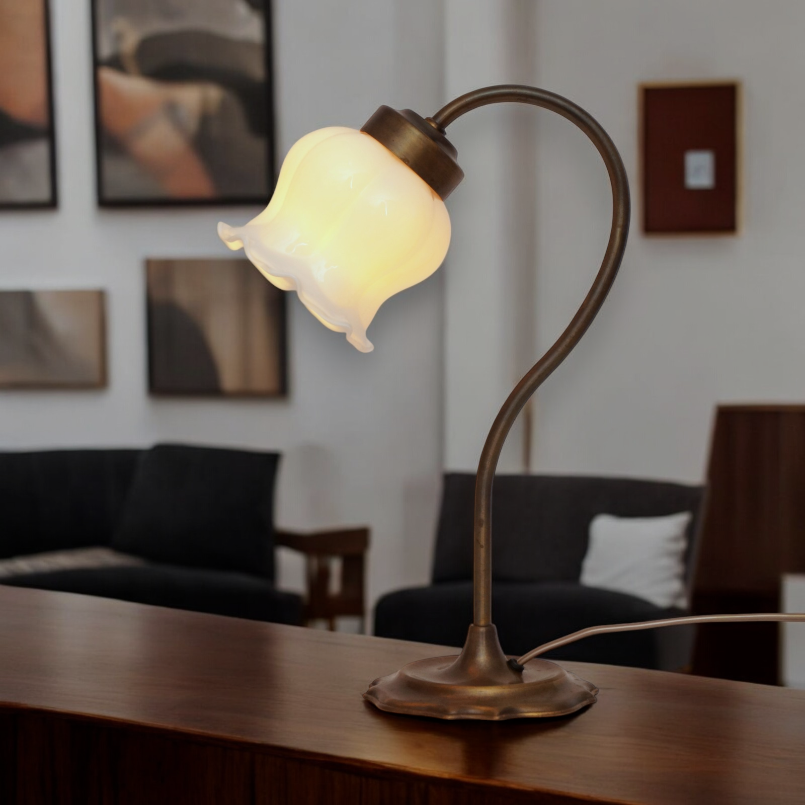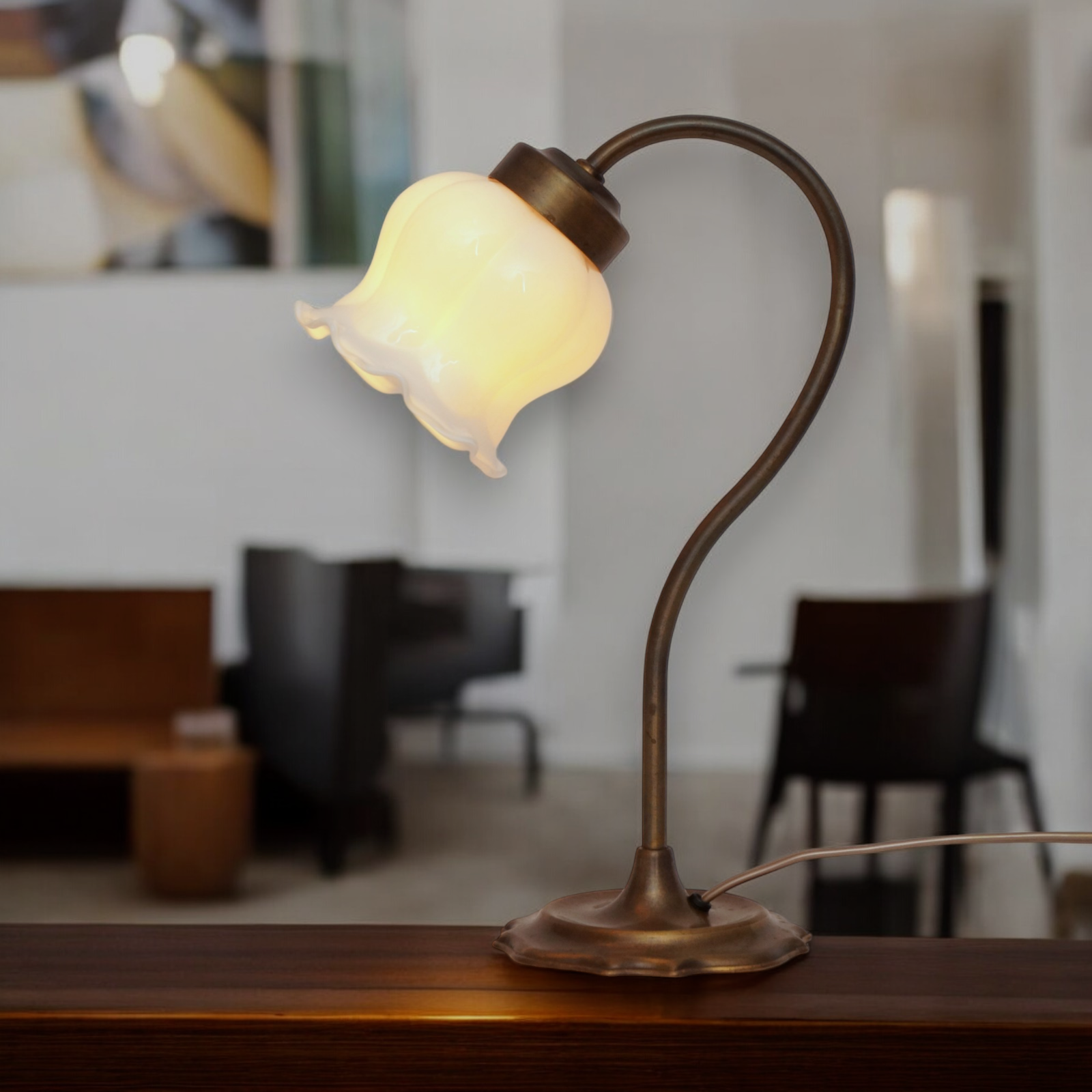 Art Nouveau Brass Lamp "WHITE ROSE" Unique Table Light