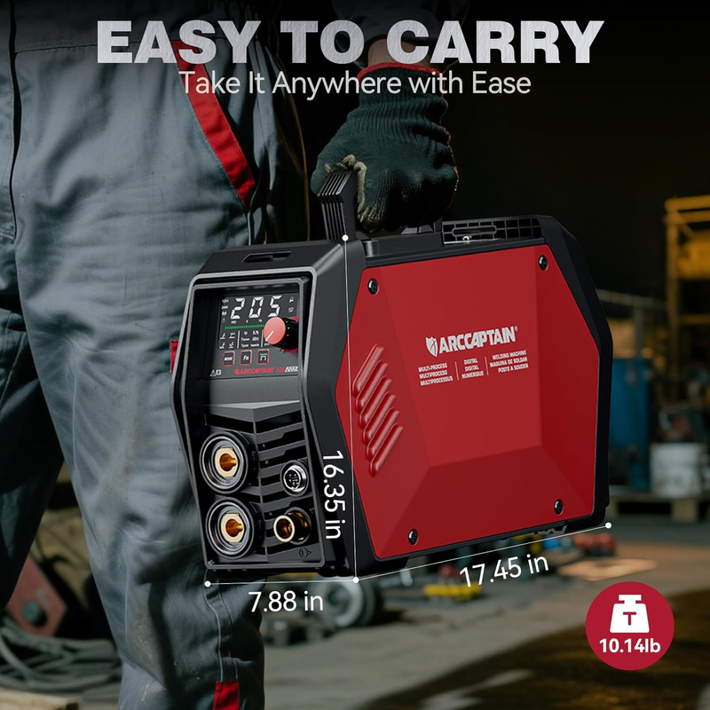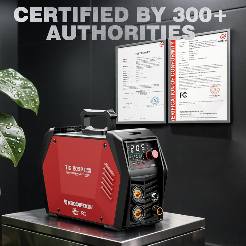 [DUAL VOLTAGE FULL PROTECTION] ? Compatible with 120V or 240V input power for maximum flexibility. Features built-in VRD, smart fan, and multiple protections (overheat, overcurrent, undervoltage) with a unique custom airflow design to ensure stable operation and long service life in any environment. The ARCCAPTAIN TIG 205P Pro has passed multiple professional tests and certifications, including ANSI/FCC standards, and comes with a 3-year warranty and lifetime technical support.