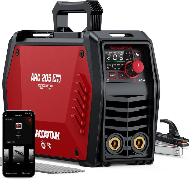 ARC205 Pro Stick Welder, [APP Control] 205Amp Arc/Lift TIG Welding Machine, Large LED Display, IGBT Inverter 120V/240V MMA Welder with Hot Start, Arc Force, and Anti-Stick