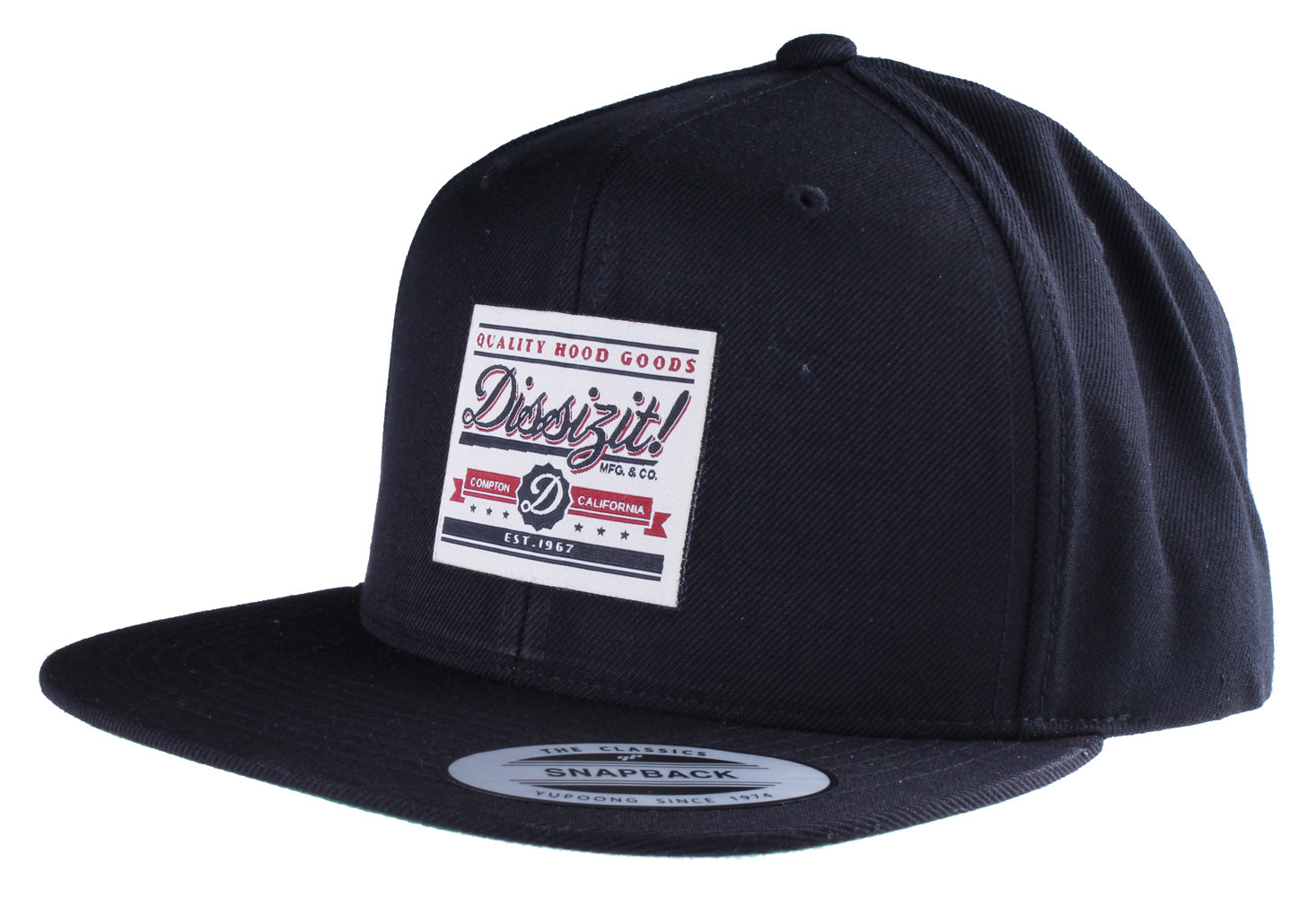 Dissizit! Kos Etichetta Yupoong Nero Baseball Berretto Compton California Nwt