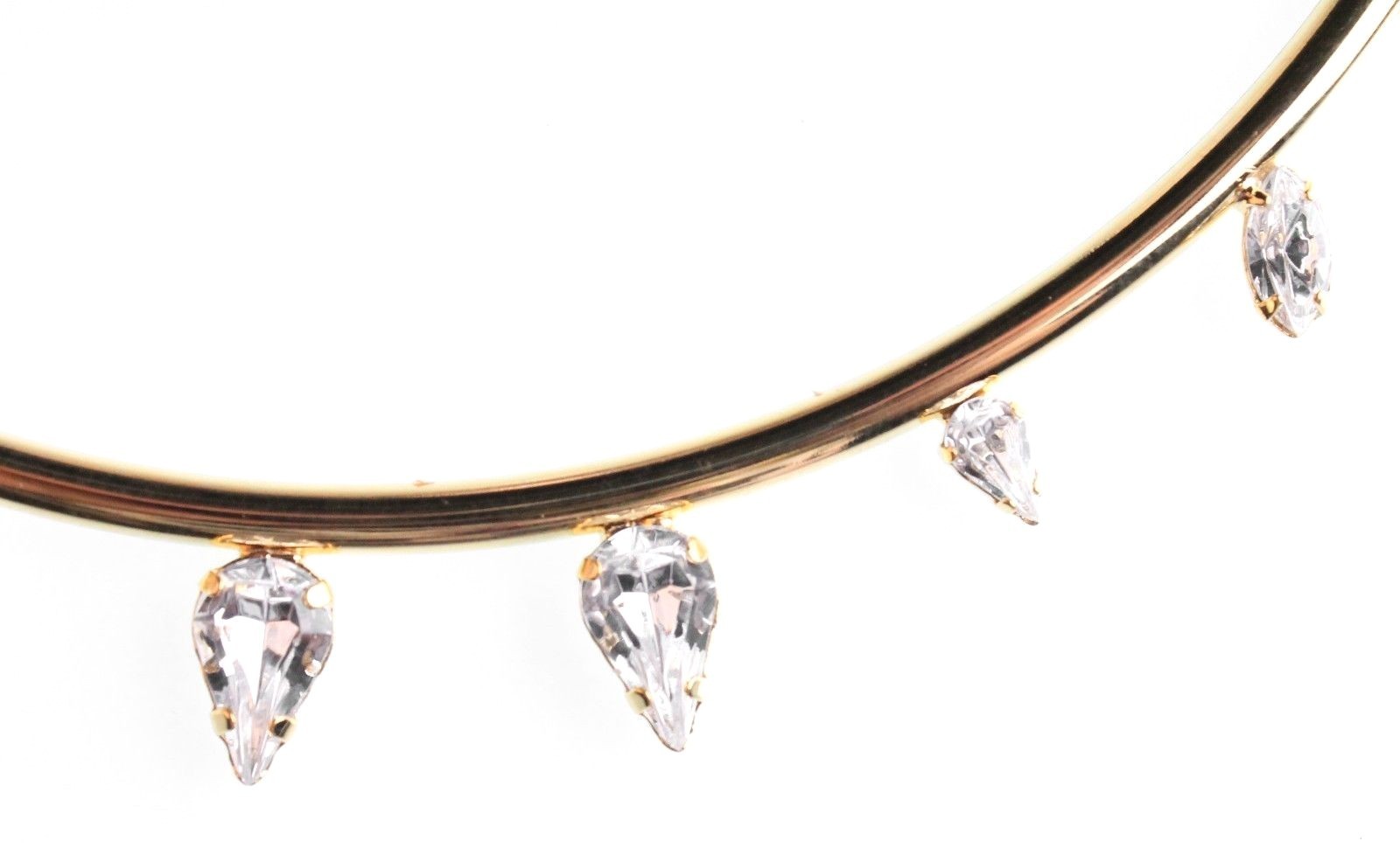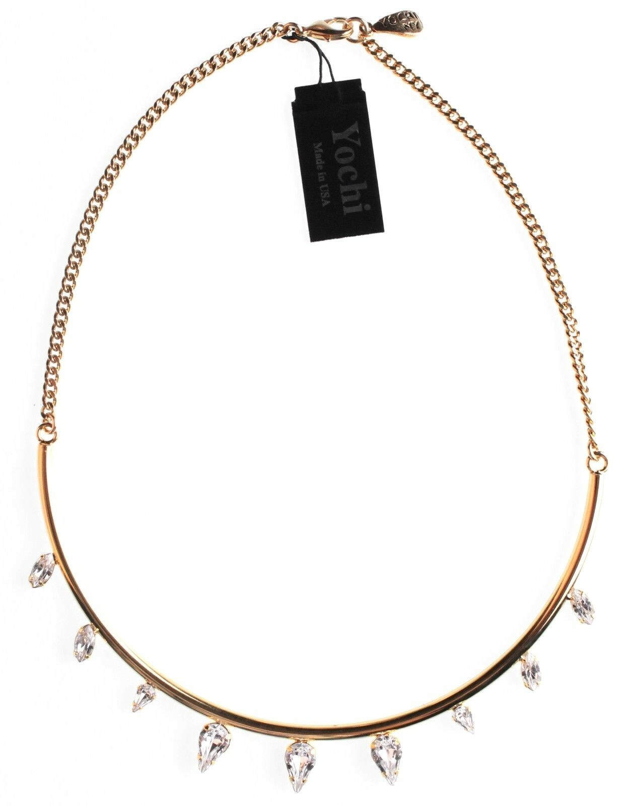 Questo e per una nuova collana di istruzione a semicerram cristallina in oro Yoshi New York Gold. La barra del semicerchio ha quattro cristalli marchesi da 10 mm, tre grandi e 2 piccoli cristalli set a forma di pera da 8 mm La lunghezza e 20 "