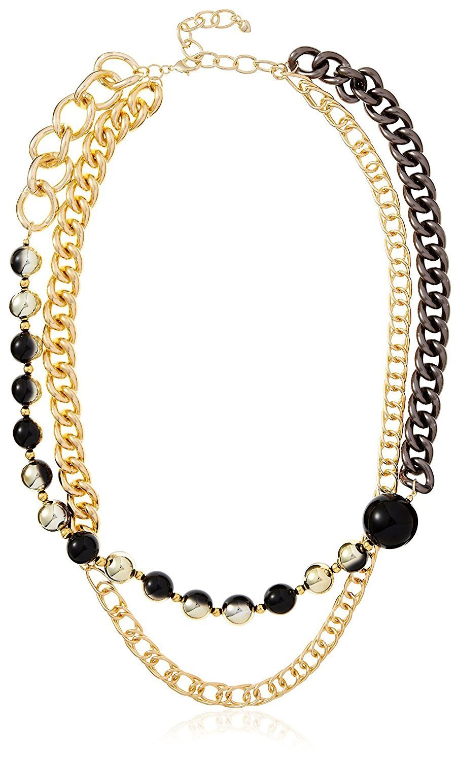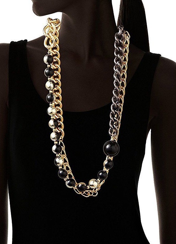 Questo e per una nuovissima Daniela Swaebe 18K Gold Black Rhodium Plaked Ball Chain Ombre Dichiarazione Collana Lunghezza regolabile da 33-36 "