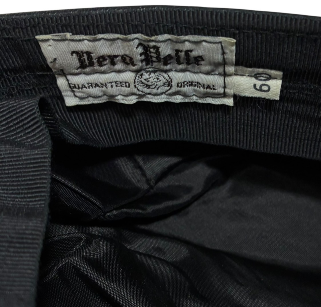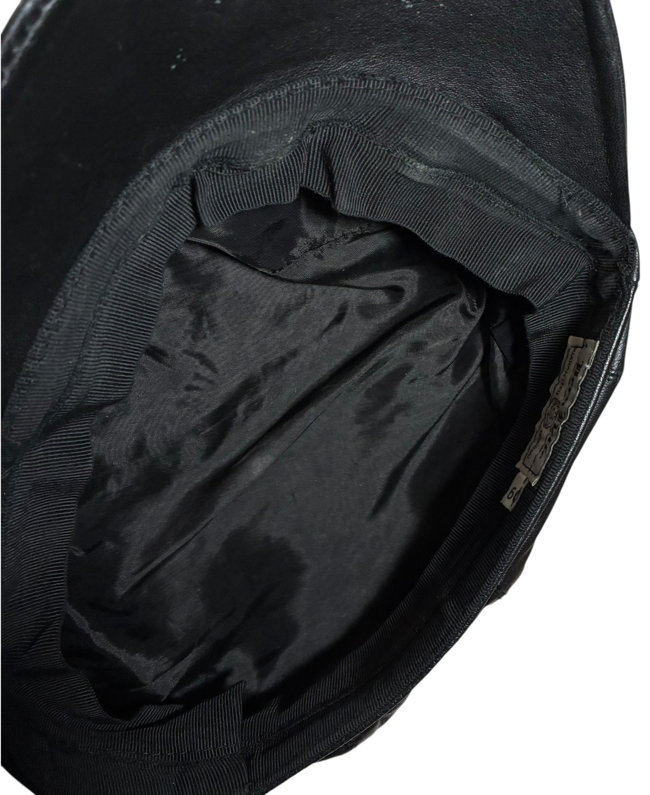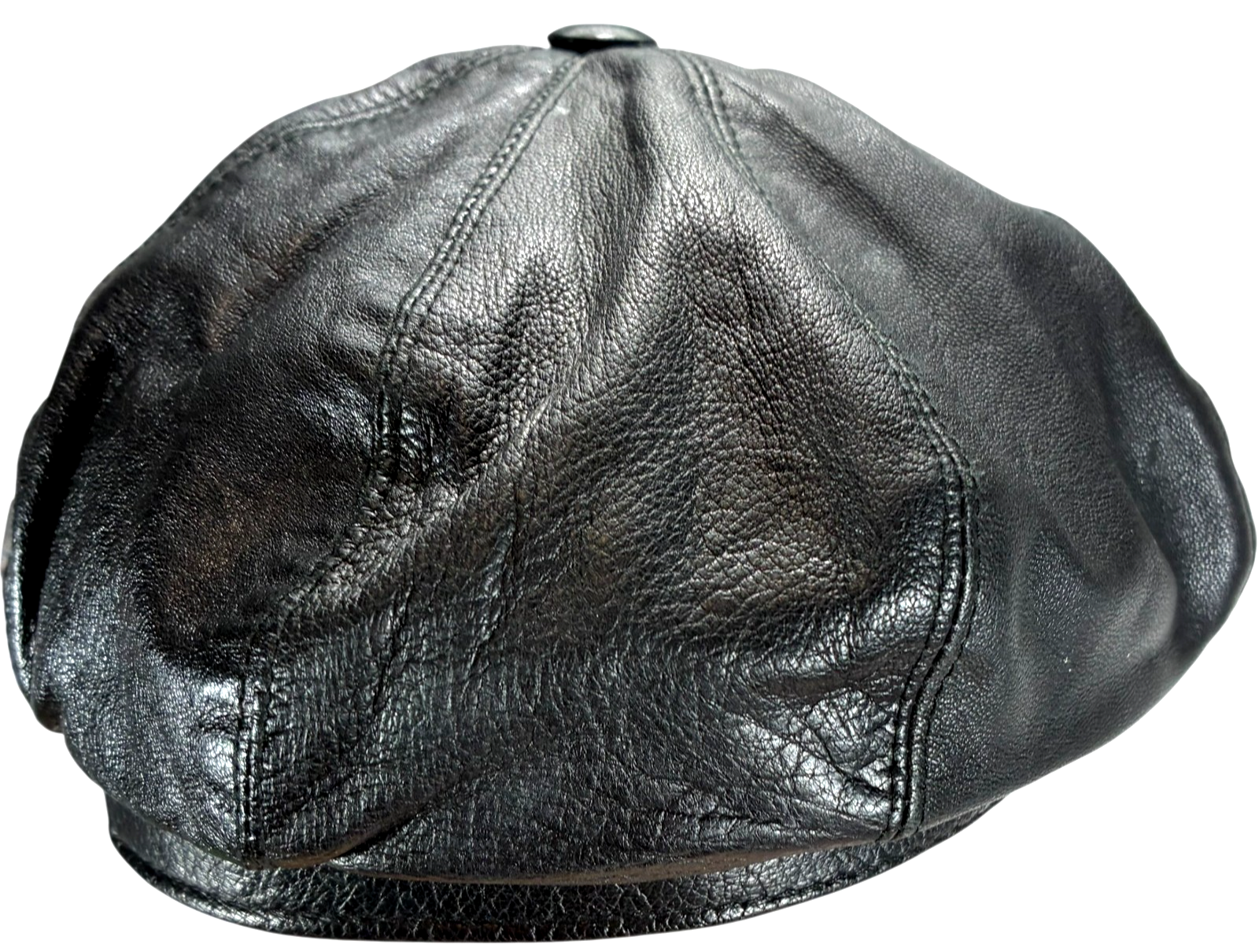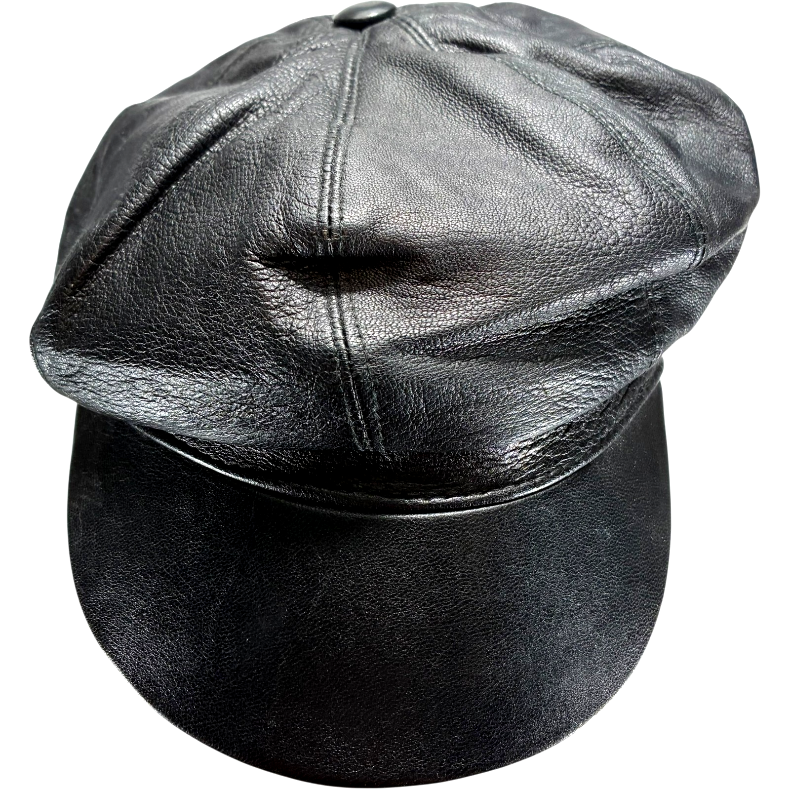 VTG Vera Pelle Black Italian Leather 8 Panel Newsboy Gatsby Cap Hat 60cm 7.5 in