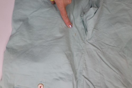 Blemishes front and back. Has color fade