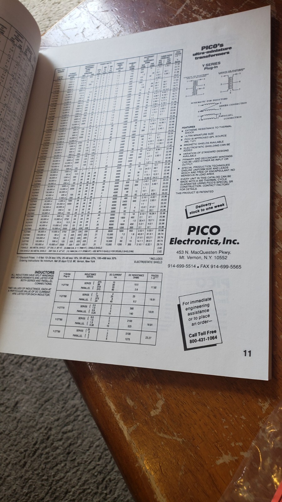 Pico Electronics degli anni '80 Trasformatori ultra-miniature Catalogo induttore AC-DC Abbiamo ottenuto i nostri cataloghi dalla vendita immobiliare da un gentiluomo che era un macchinista e armeggiatore per tutta la sua vita. Dai un'occhiata ai miei altri vecchi cataloghi per le parti degli attrezzi: dara un accordo sui multipli !!