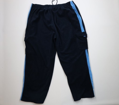 Vintage 90s Y2K Wilson Mens 4XL Distressed Wide Leg Fleece Cargo Sweatpants Blue