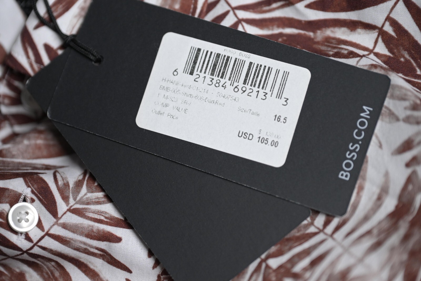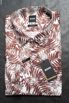 HUGO BOSS Uomo Hank Kent Slim Fit Foglia Stampa Cotone Elastico Abito Camicia 39