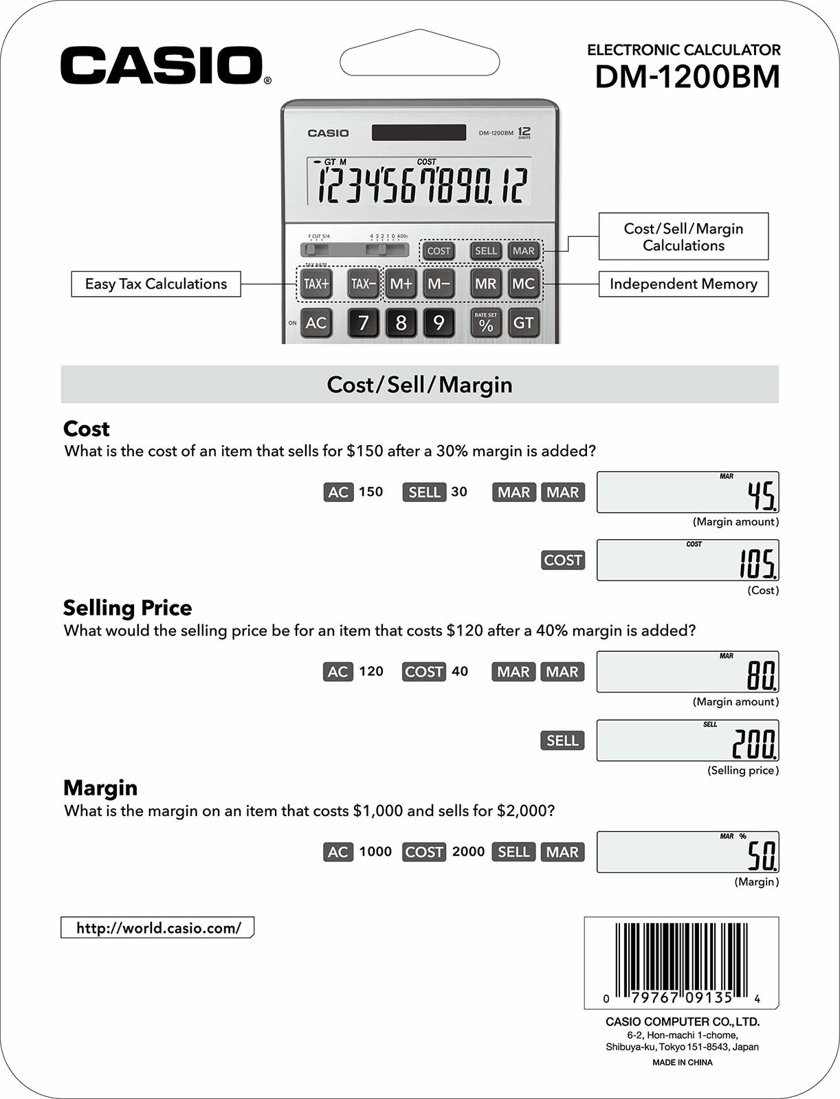 Casio DM-1200BM Business Desktop Calculator with Cost/Sell/Margin & Tax Keys |