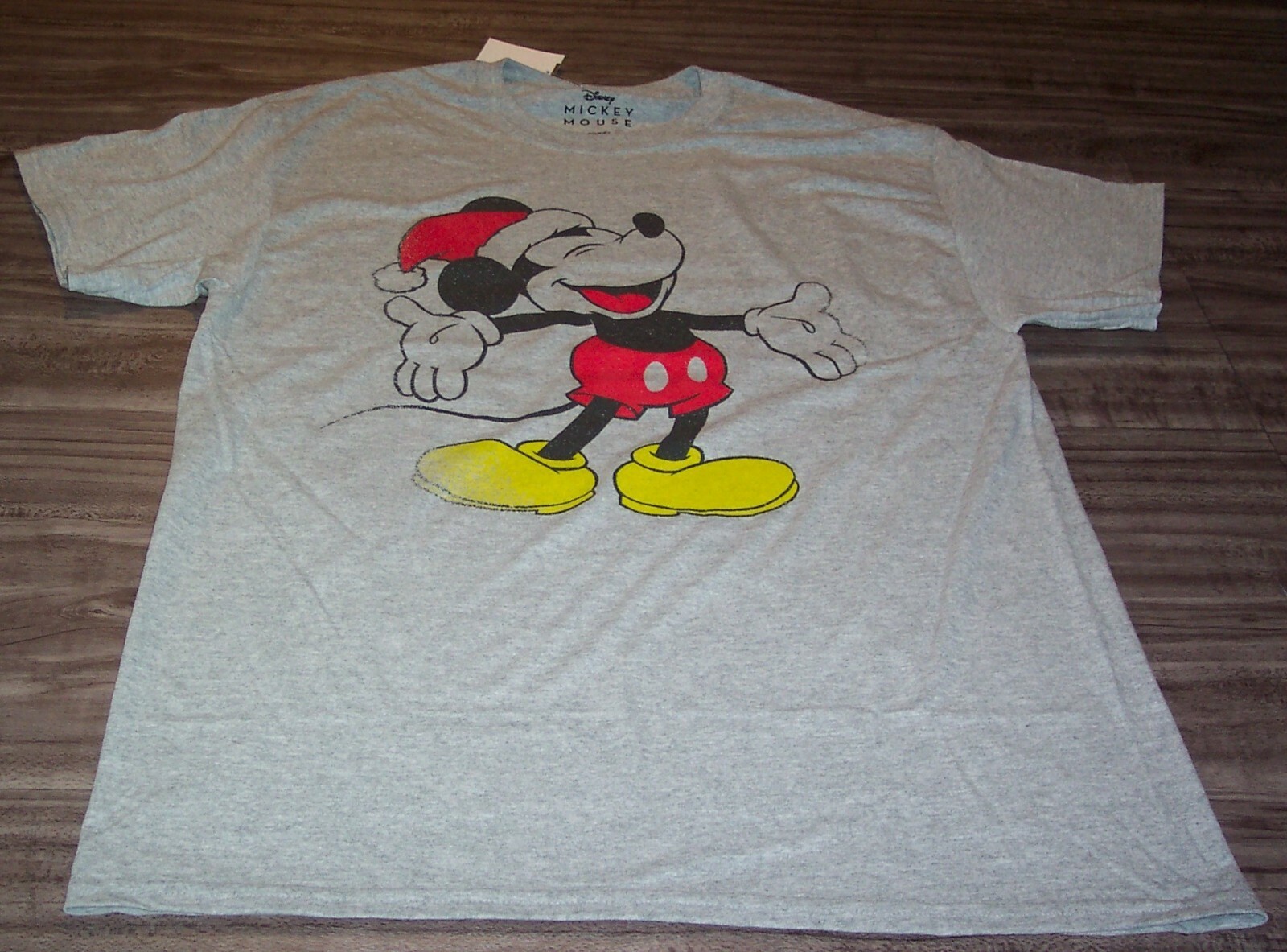 Walt Disney RETRO MICKEY MOUSE IN SANTA HAT CHRISTMAS T-Shirt LARGE NEW w/ TAG