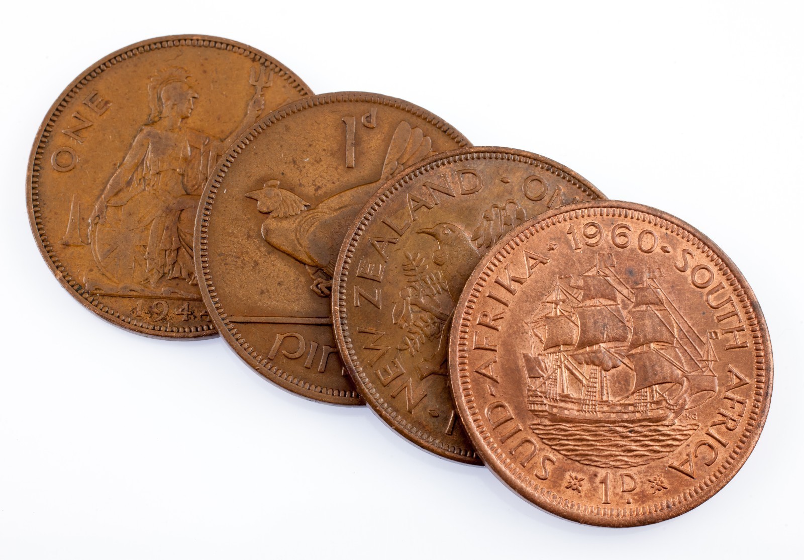 Lot de 4 British Commonwealth Large Pennys 1943 - 1960 Fine a UNC Condition