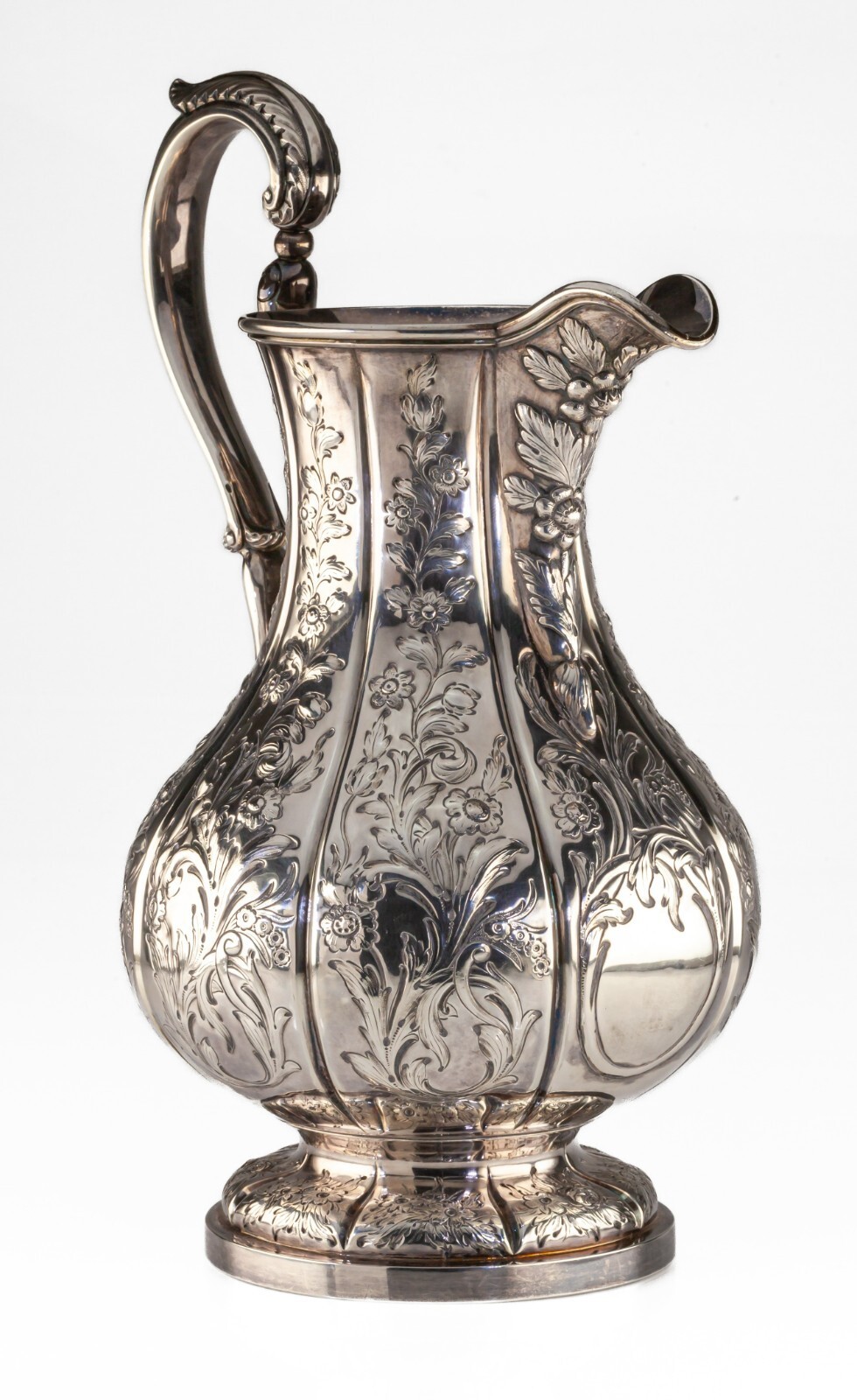 Superbe, un pichet d'eau de repousse argente unique, unique par Lincoln Foss